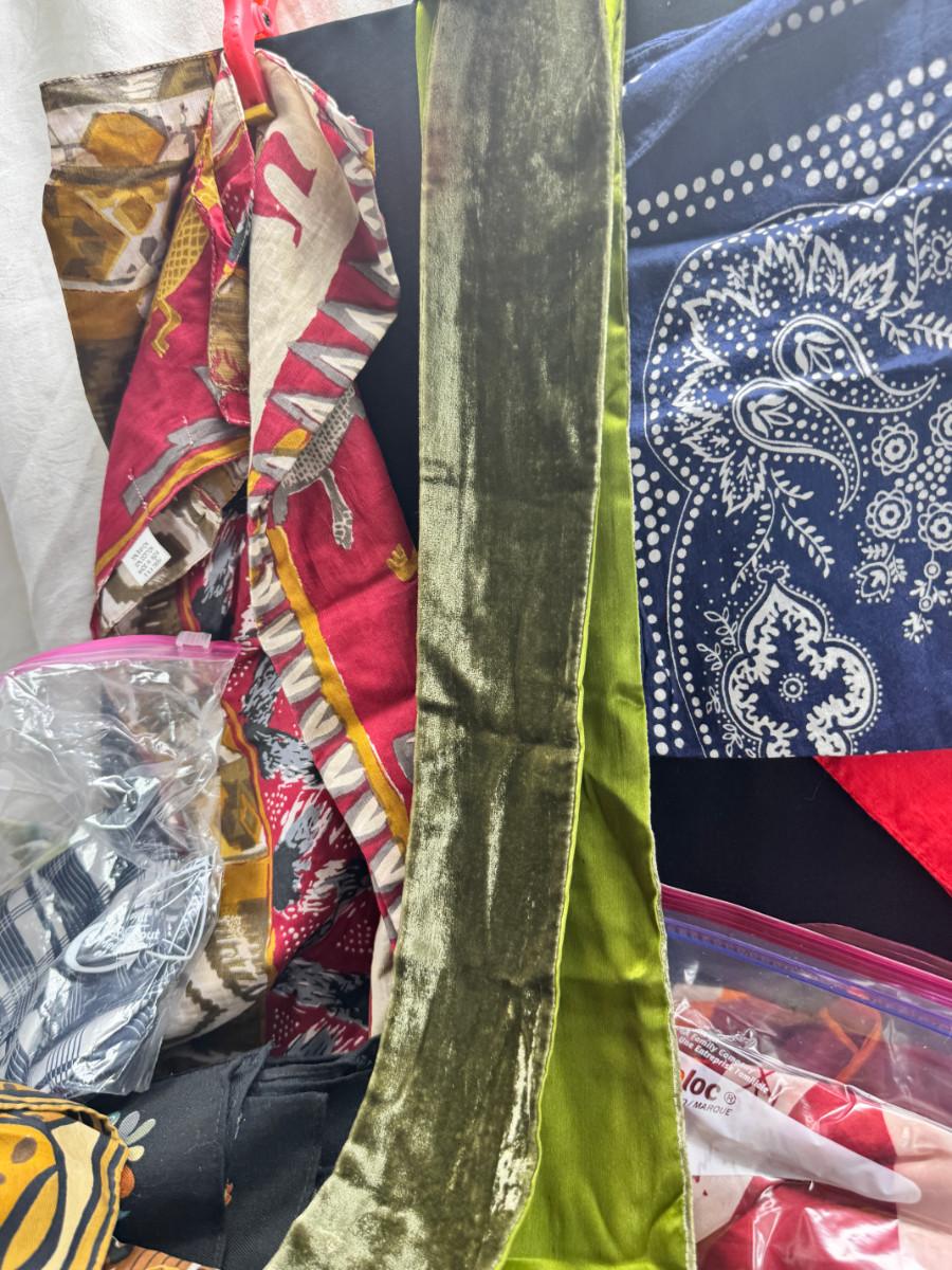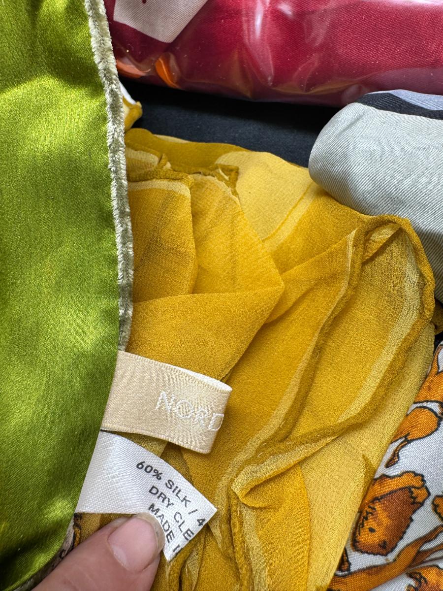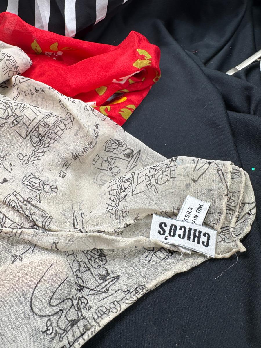 selection of different silk scarves, some designer, some blends, all in good conditon.