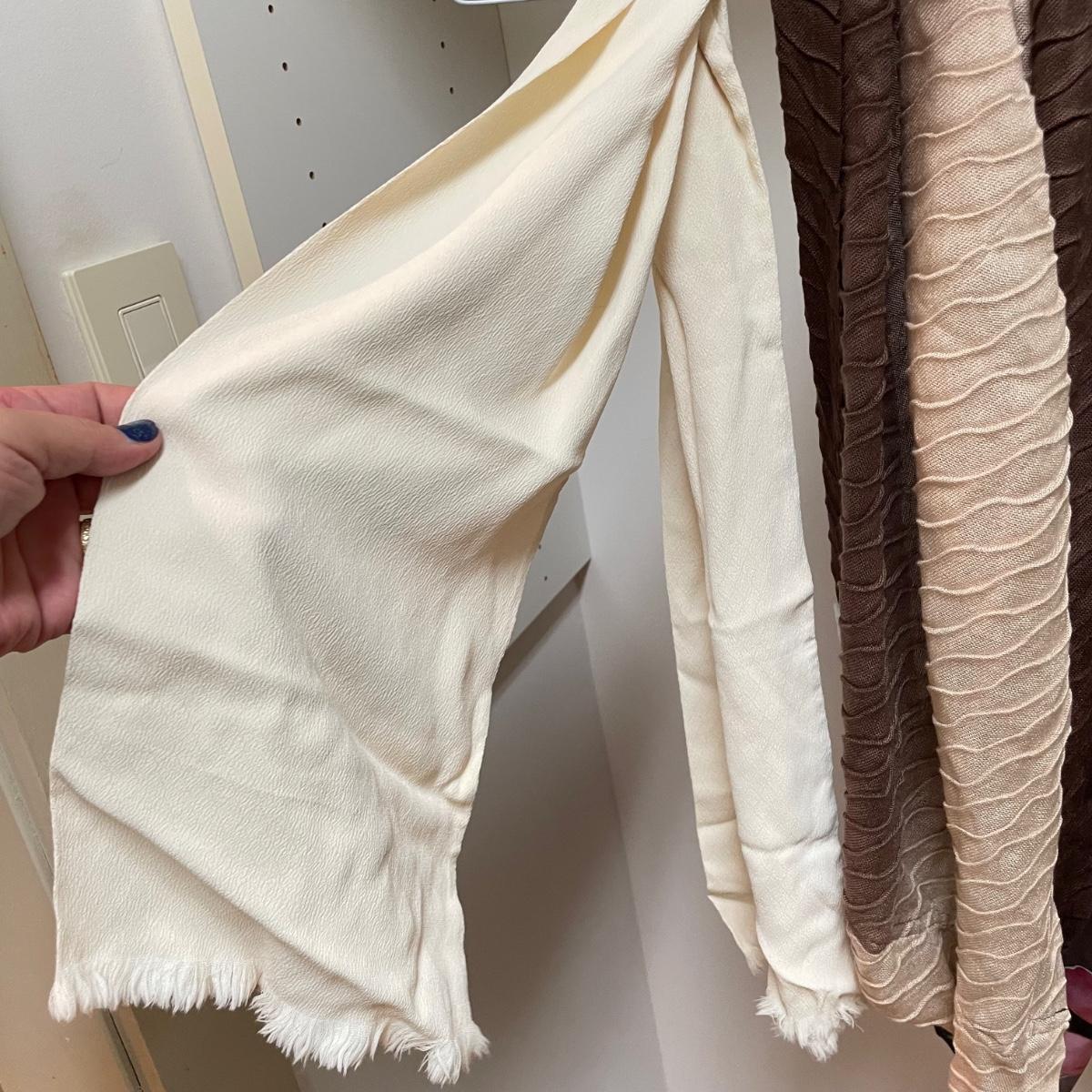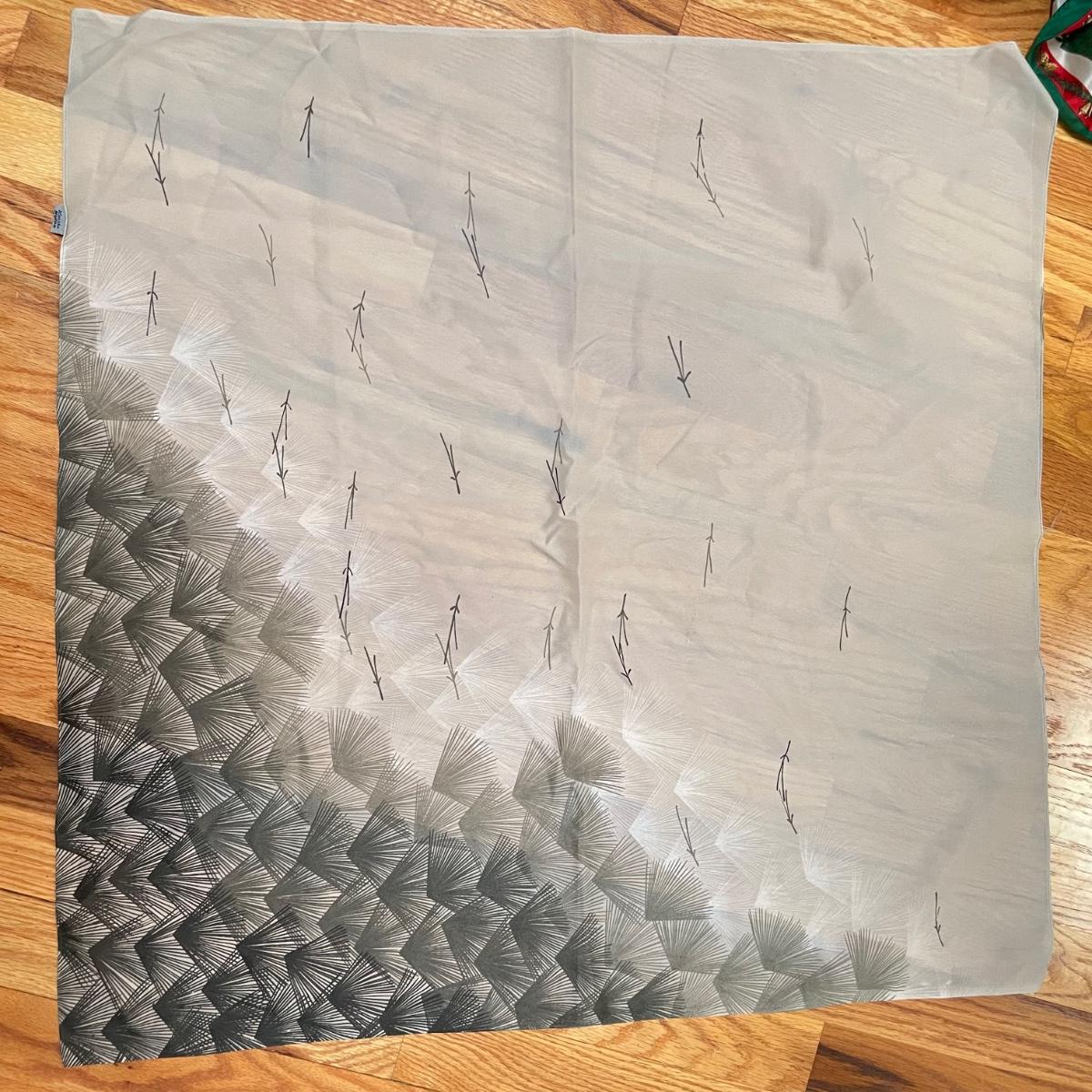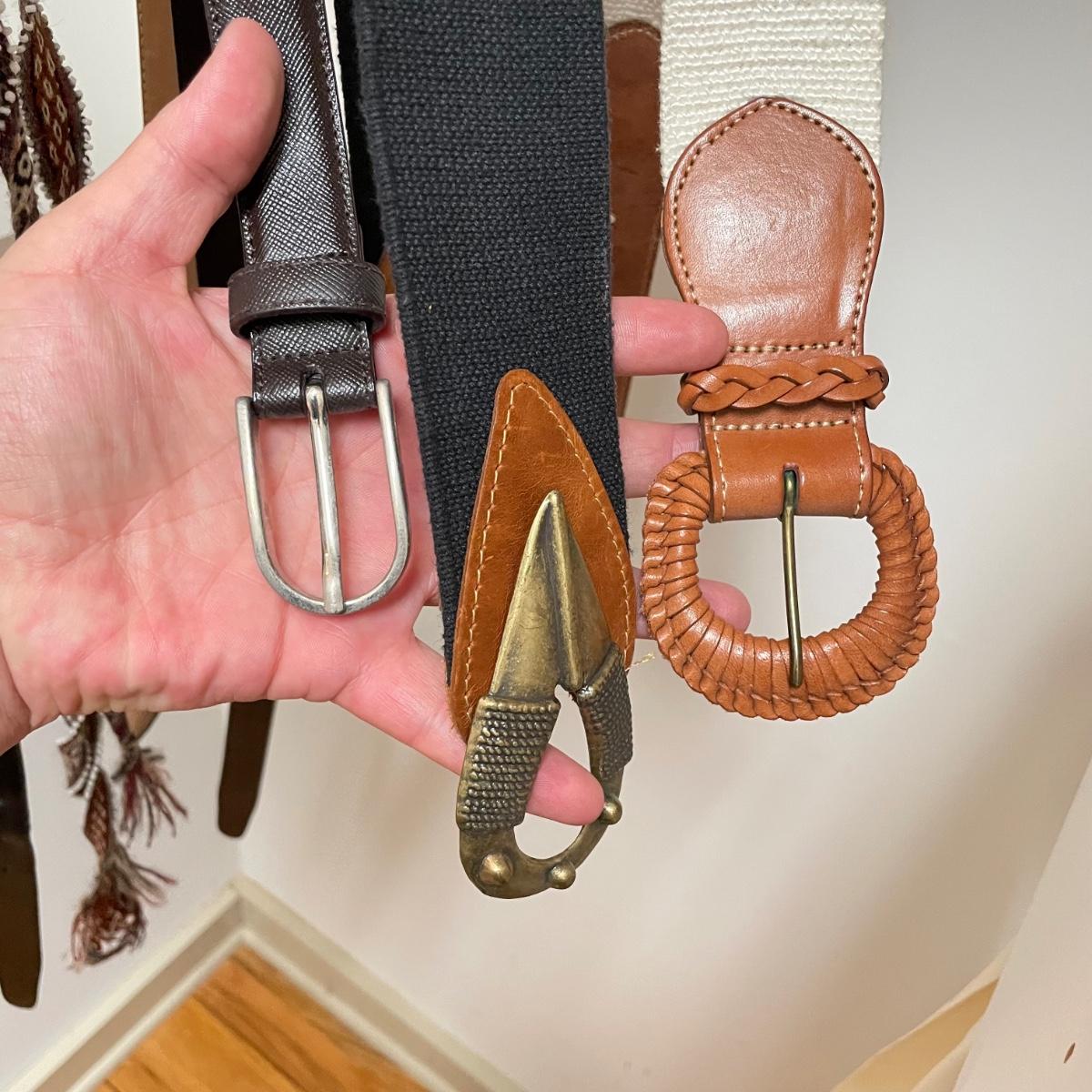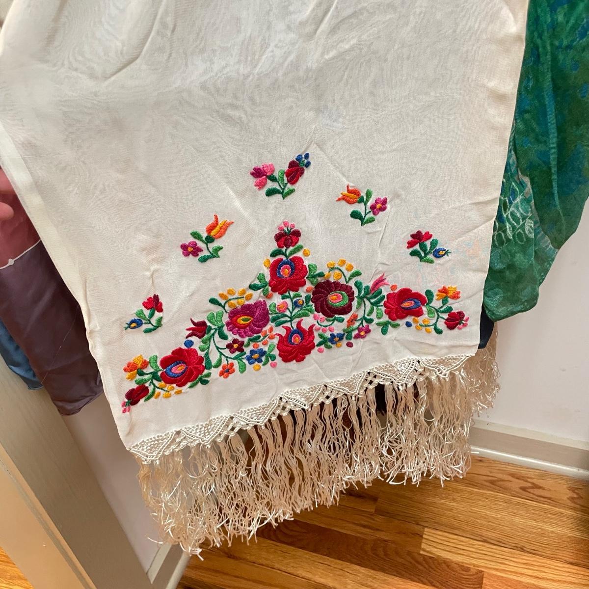 16 hanging scarves with different styles and made from a variety of materials, most do not have tags attached to verify the textile. Lot also includes seven belts, known sizes are small/28. The green, black, and brown belts are all marked Genuine Leather. Lot also holds a handful of silky feeling handkerchiefs, see images for known materials. The Asian style handkerchief with trees looks like a grey hombre in the photos, but it is actually lovely shades of green. Lastly, five pairs of gloves (the brown faux fur has a small hole in the finger and they are also fur lined), a fuzzy pair of ear muffs, two winter hats and a headband. See images. Shipping available.
