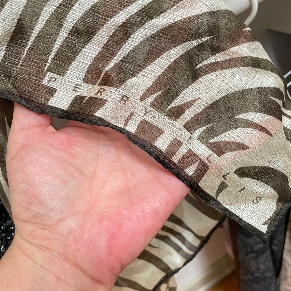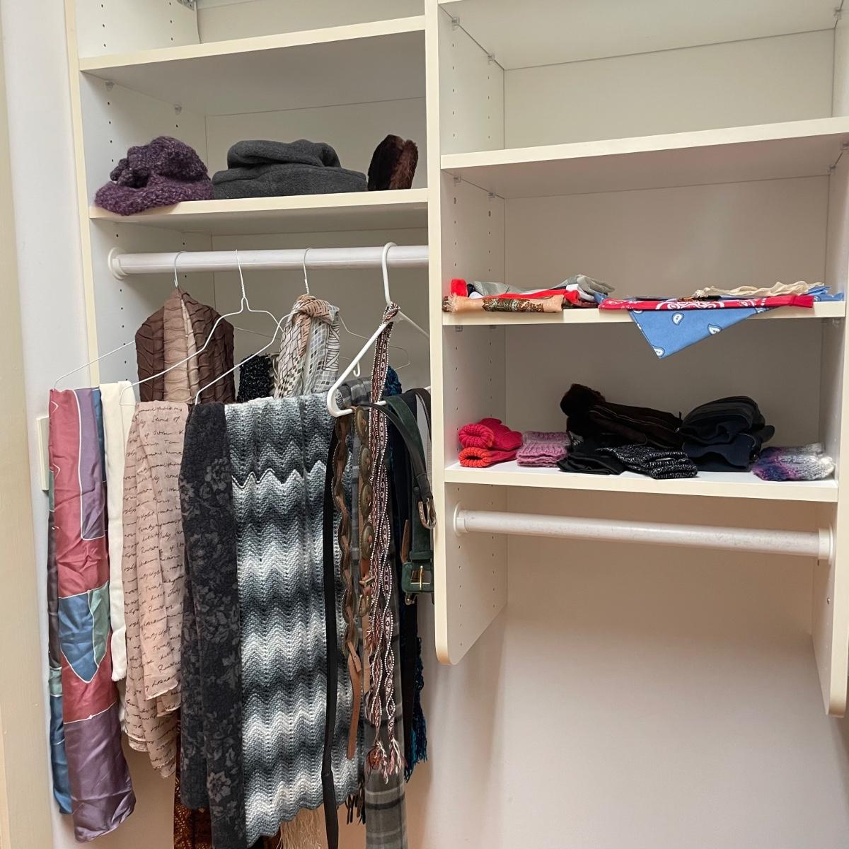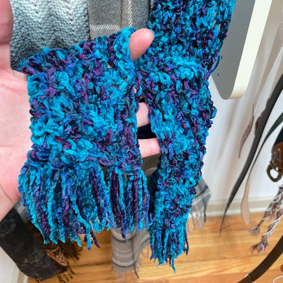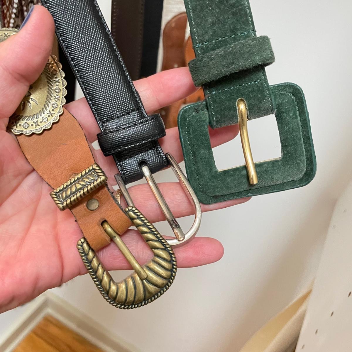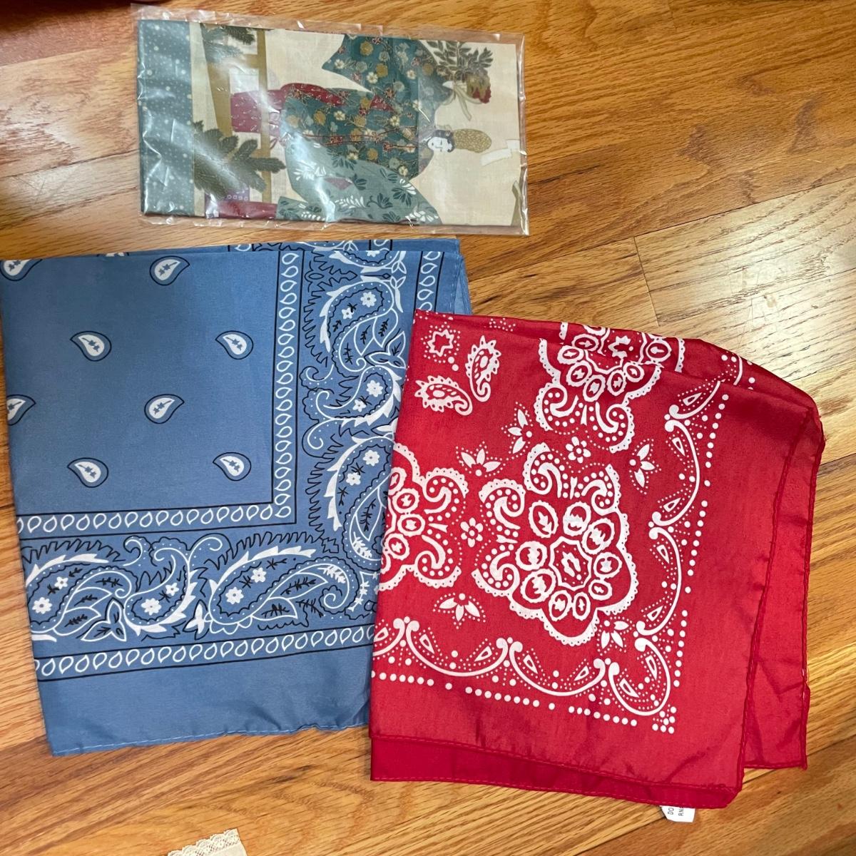 16 hanging scarves with different styles and made from a variety of materials, most do not have tags attached to verify the textile. Lot also includes seven belts, known sizes are small/28. The green, black, and brown belts are all marked Genuine Leather. Lot also holds a handful of silky feeling handkerchiefs, see images for known materials. The Asian style handkerchief with trees looks like a grey hombre in the photos, but it is actually lovely shades of green. Lastly, five pairs of gloves (the brown faux fur has a small hole in the finger and they are also fur lined), a fuzzy pair of ear muffs, two winter hats and a headband. See images. Shipping available.