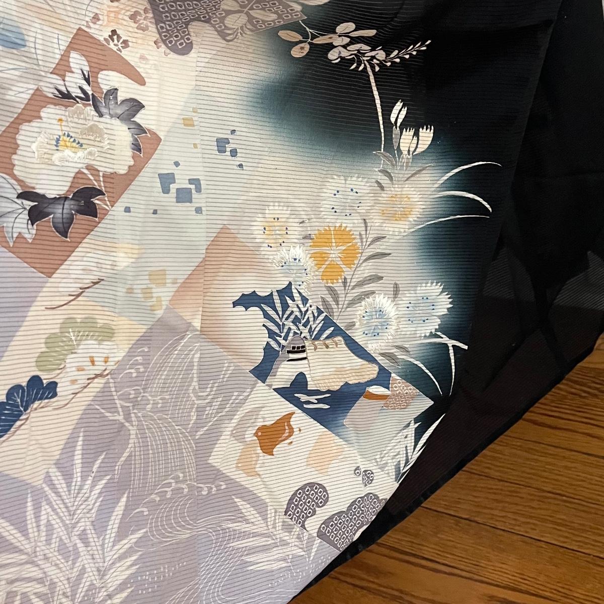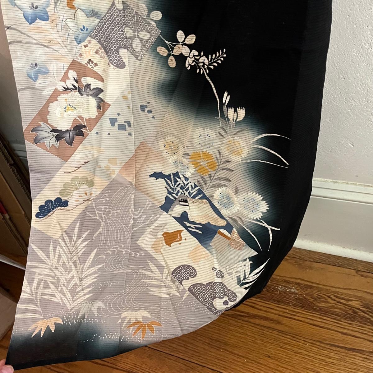 Two pieces that appear to be Japanese. The long garment appears to be a silk tomesode style kimono. With a short haori style jacket. Shoulder width of the longer kimono is approx 23” and the length 62”. Please see photos for details. Shipping available