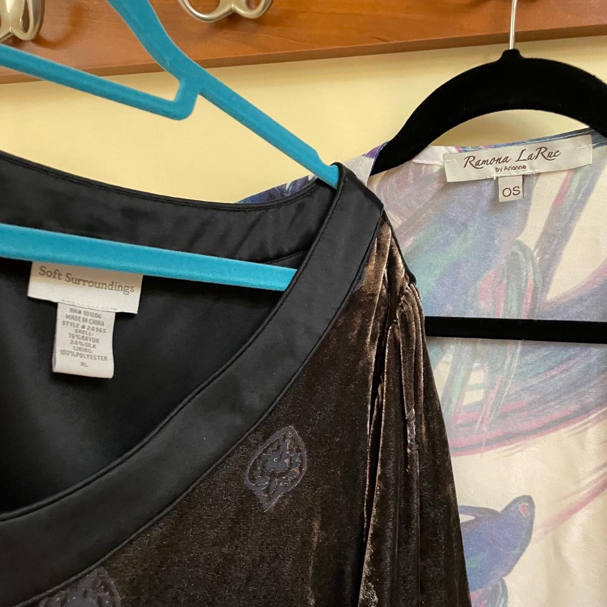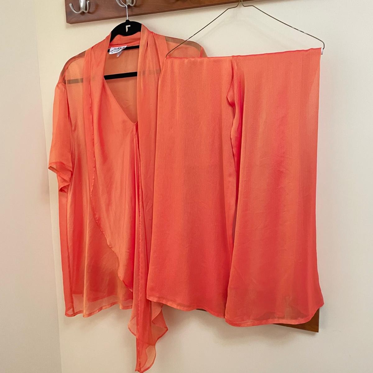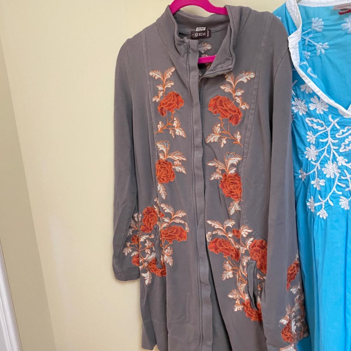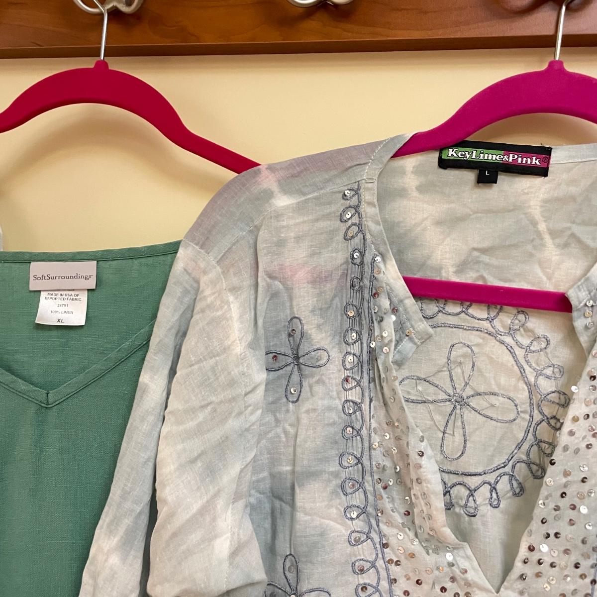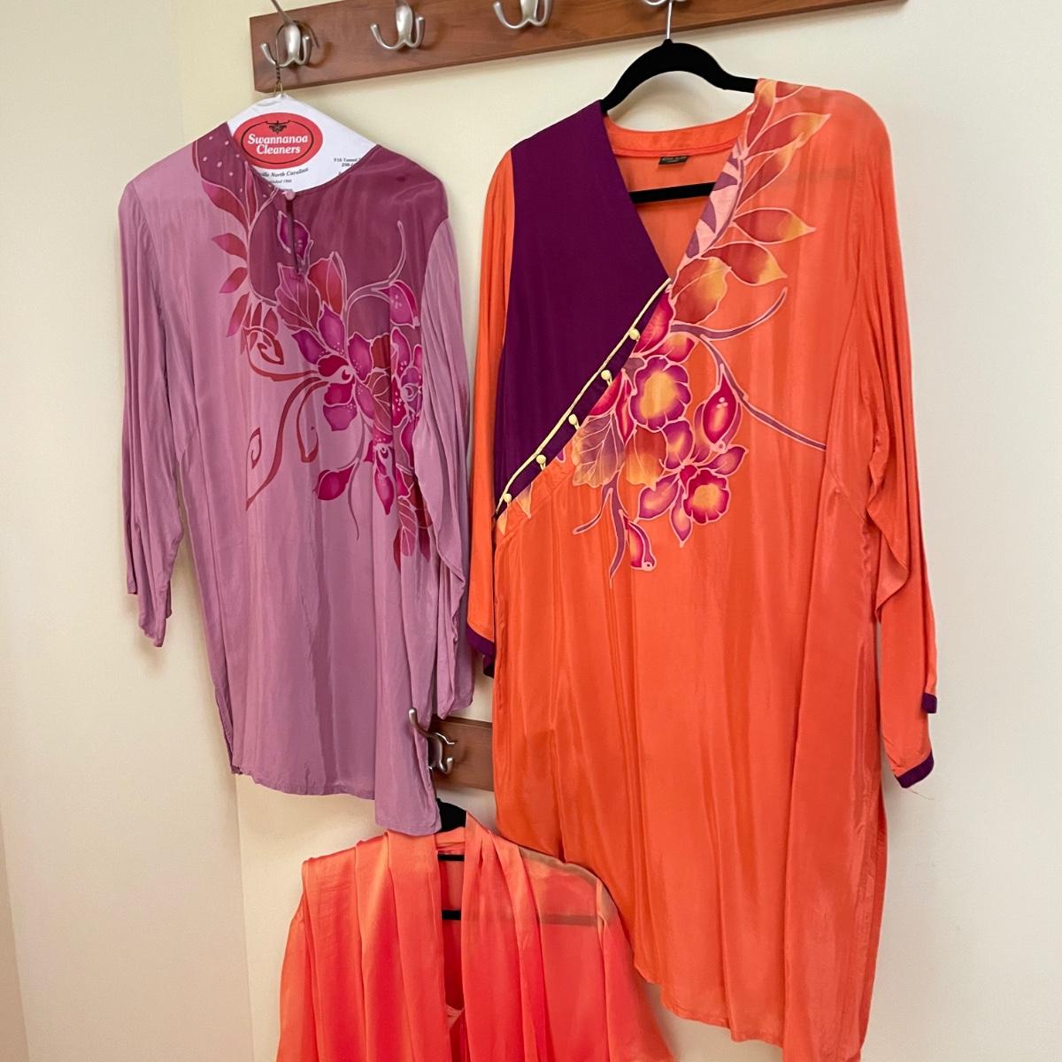 Large lot full of tunics, silky tops and flowing fashions. About 25 pieces, mostly tops, with a couple ensembles and even a silky pashmina, these fashions are loose fitting and flowing. Brands include Monisha Jaising, Gigi Moda, Peppermint Bay, Yi Lun and Zonda Nellis. See images. Sizes range from large to XXL.