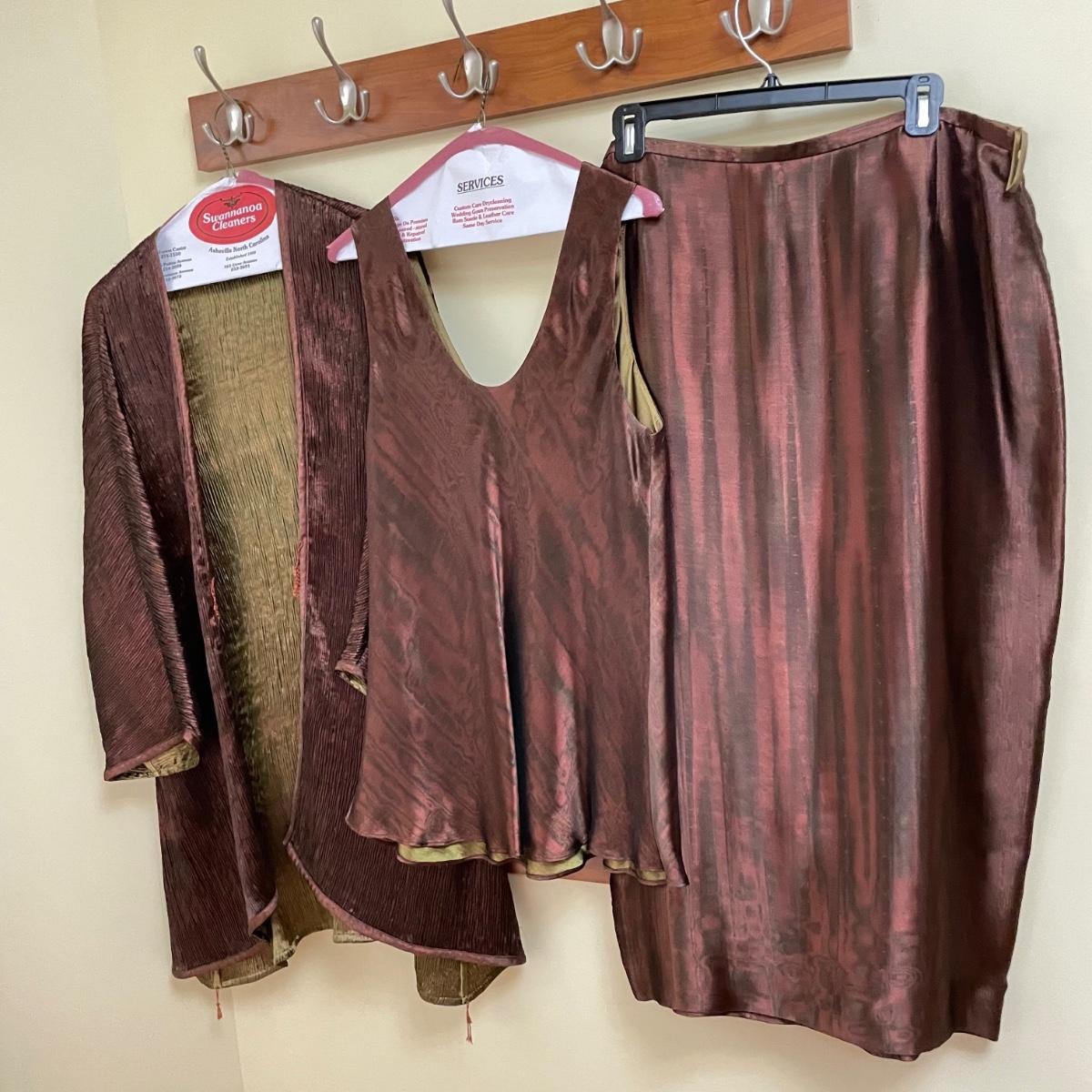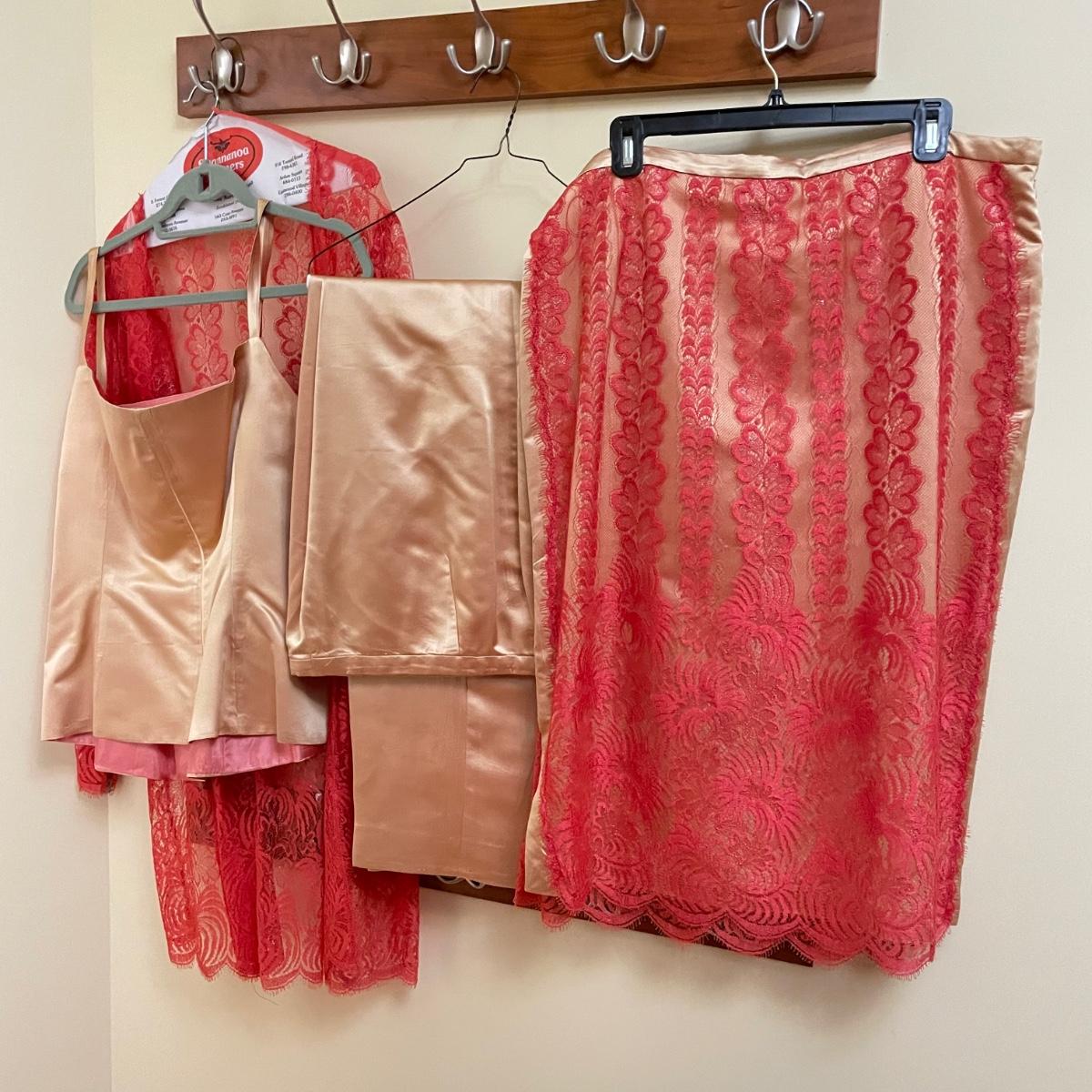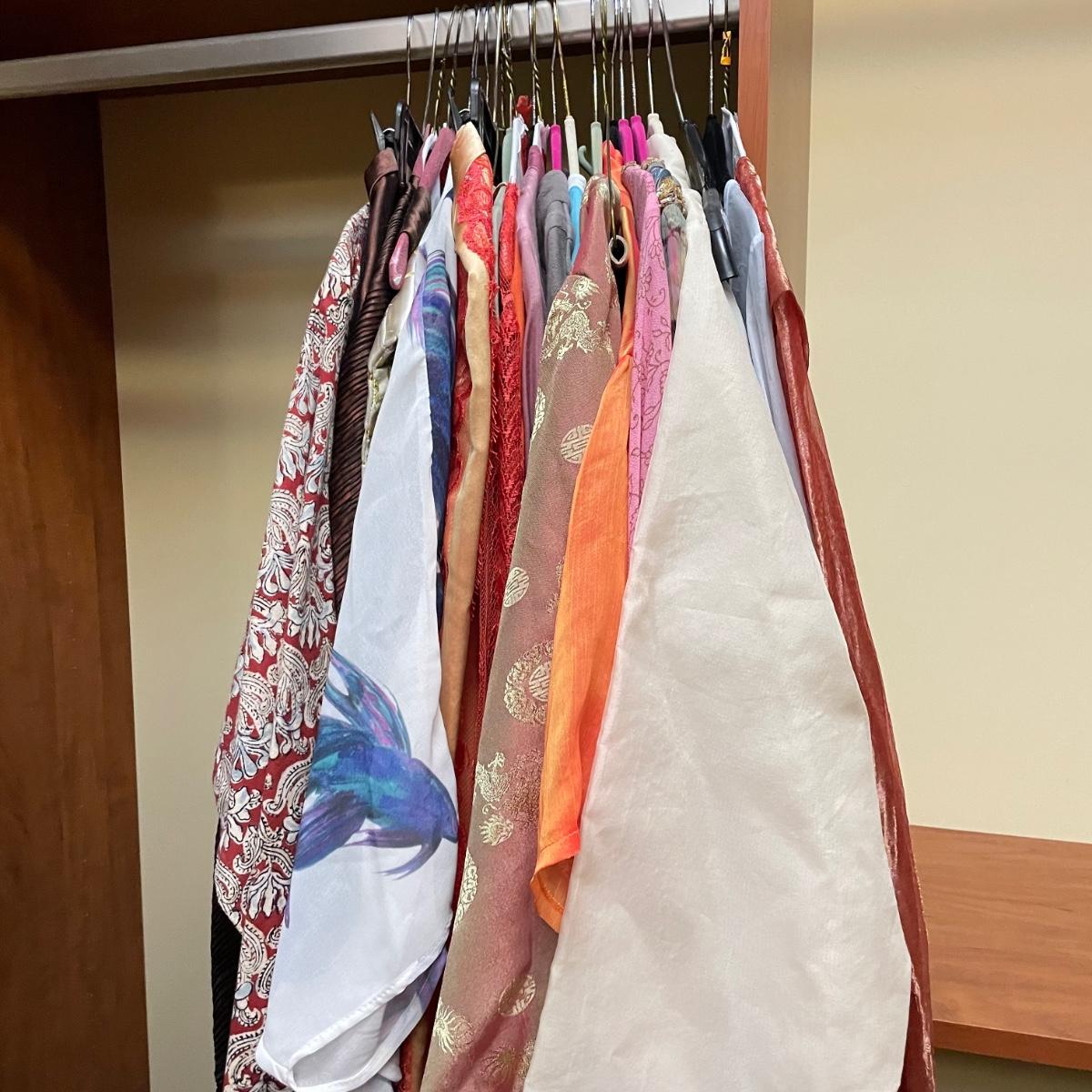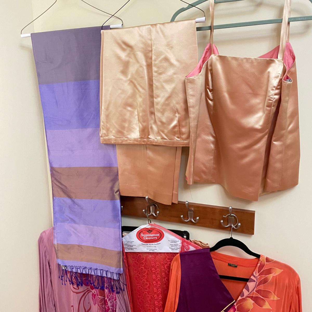 Large lot full of tunics, silky tops and flowing fashions. About 25 pieces, mostly tops, with a couple ensembles and even a silky pashmina, these fashions are loose fitting and flowing. Brands include Monisha Jaising, Gigi Moda, Peppermint Bay, Yi Lun and Zonda Nellis. See images. Sizes range from large to XXL.