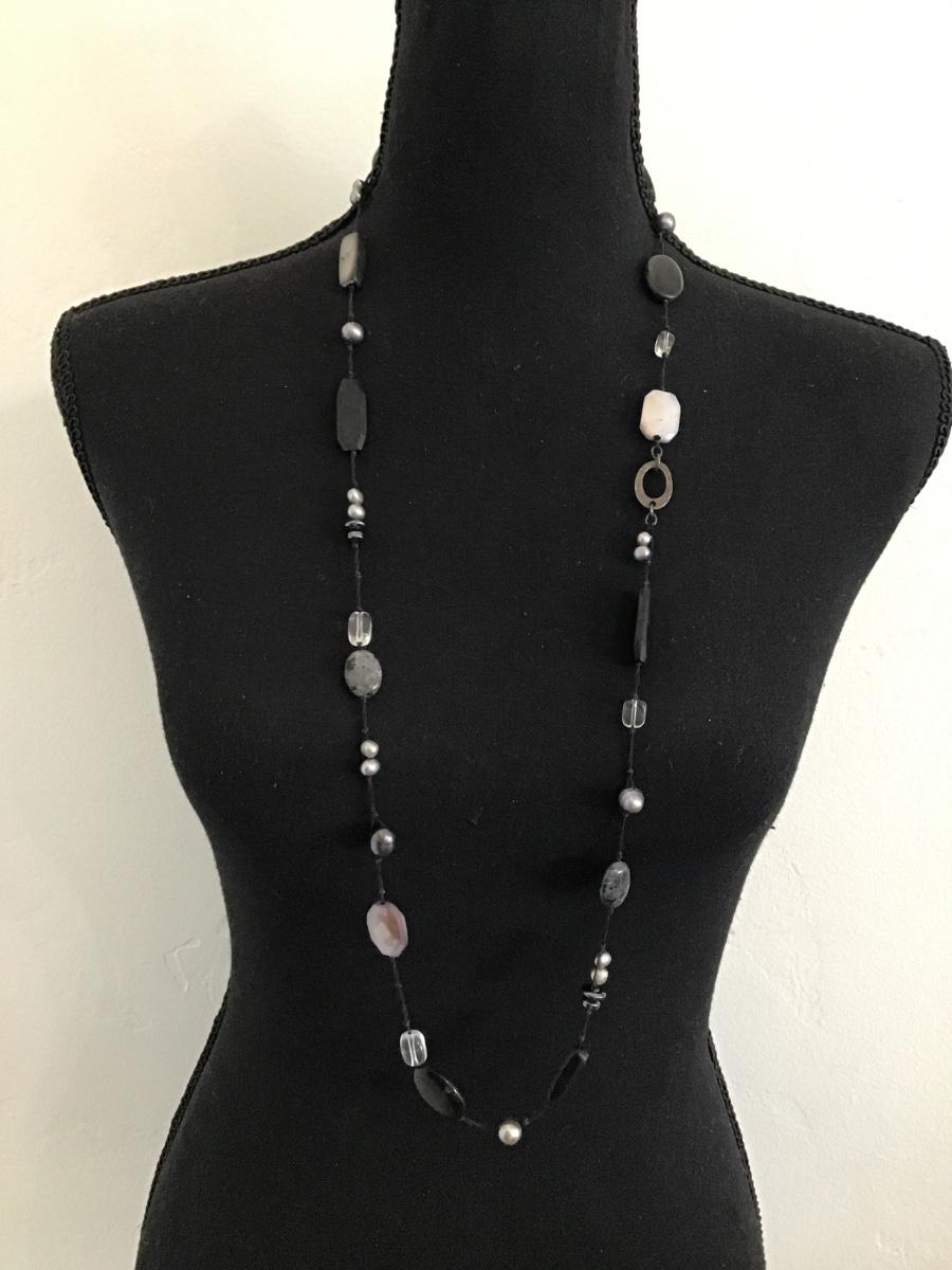 Silpada sterling silver black Hematite pearl 35 inch long necklace N1796 retired