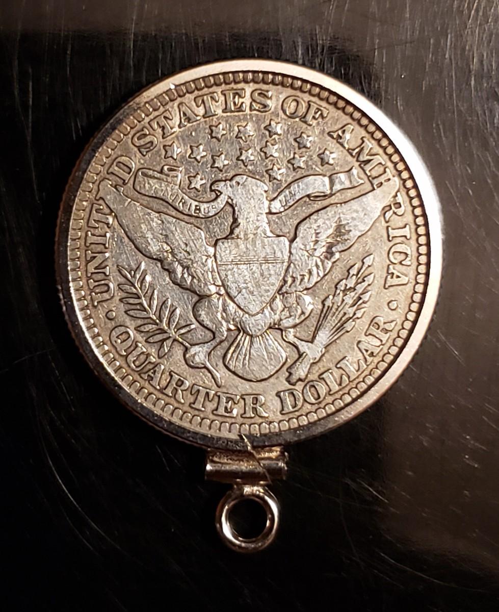 Silver 1915 quater in silver bezel .Very cool Rare silver quater jewelery