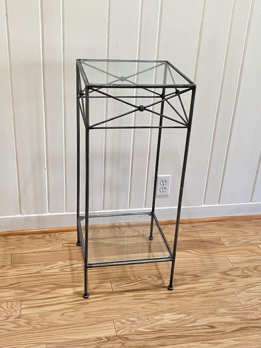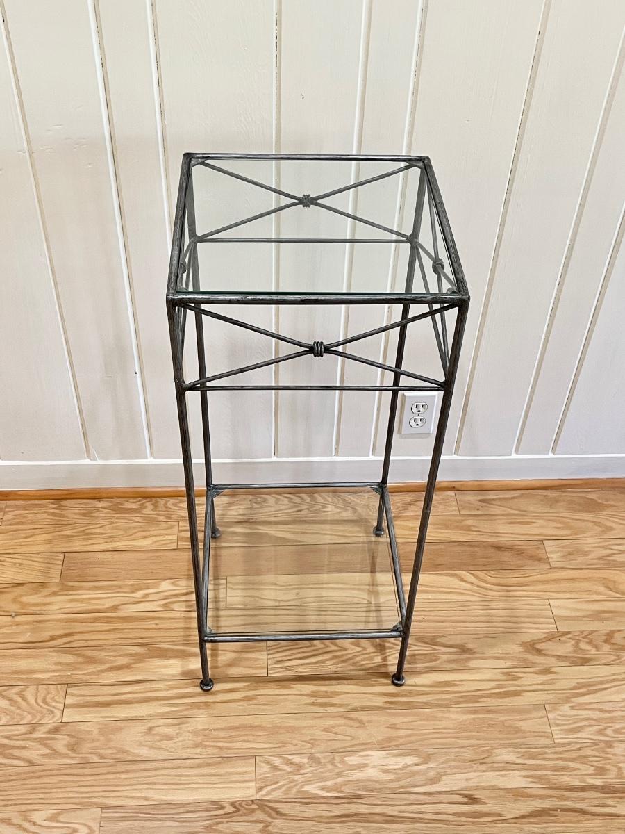 Silver Metal ~ Glass Top Pedestal/Plant Stand ~ Bottom Glass ~ * Read Details