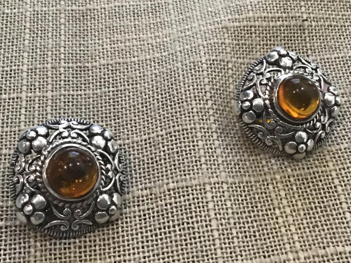 Silver 925 Amber Style Earring