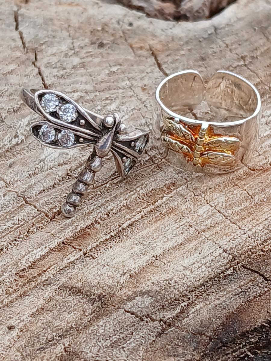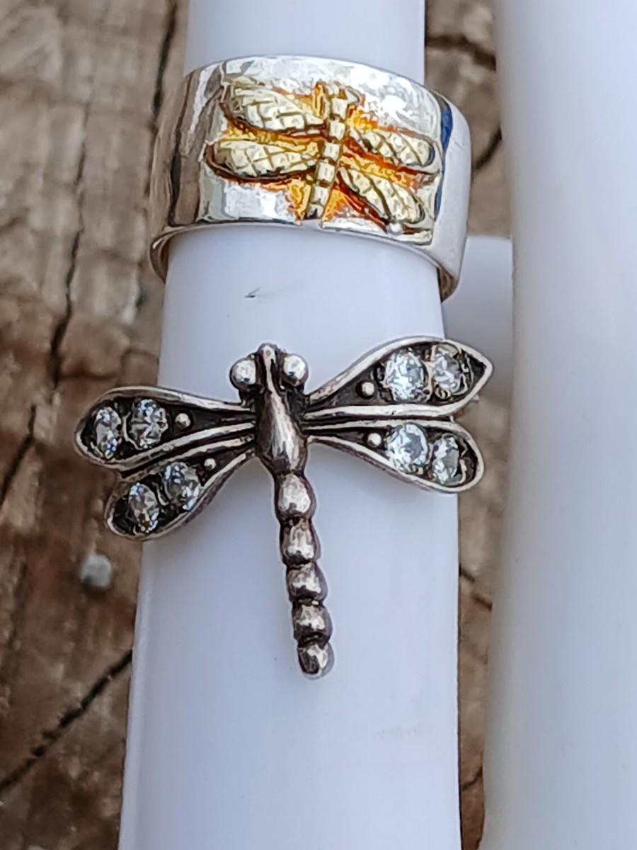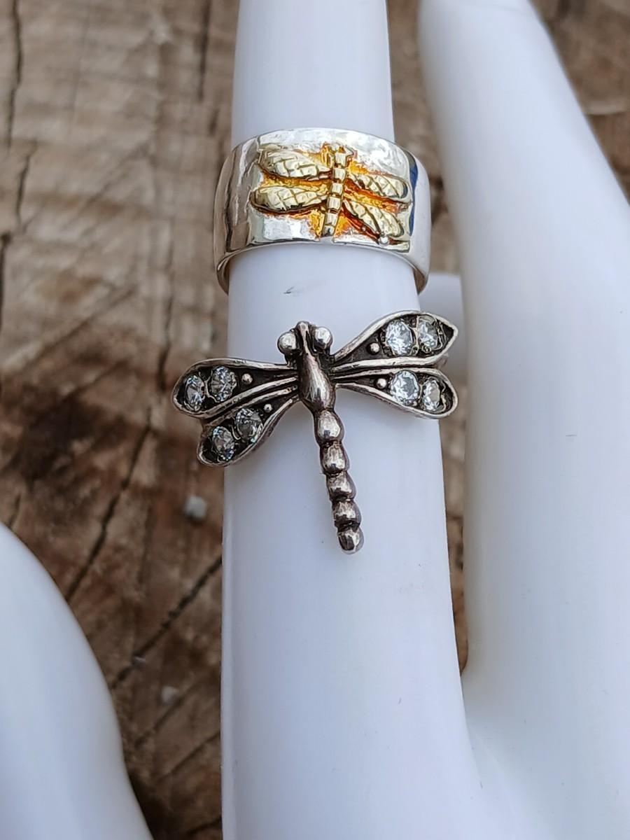 Sterling silver rings - .925 marked Dragonfly ring size 5.5 /6 and a smaller wide band Dragonfly ring Size 3.5