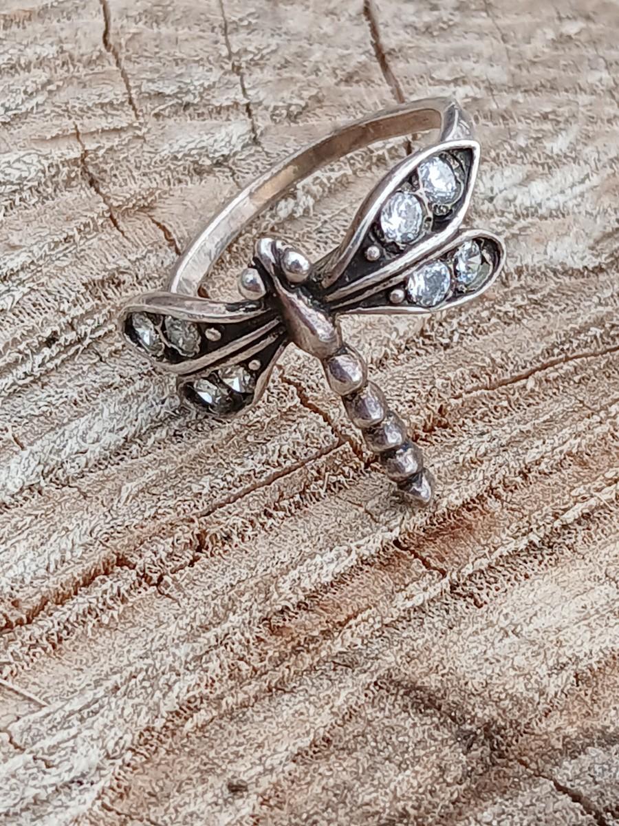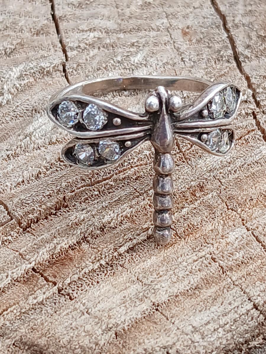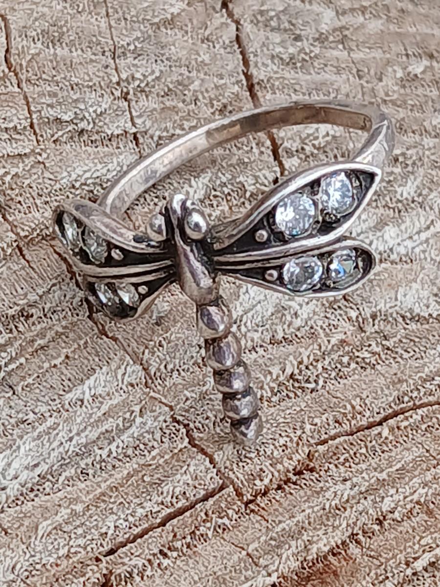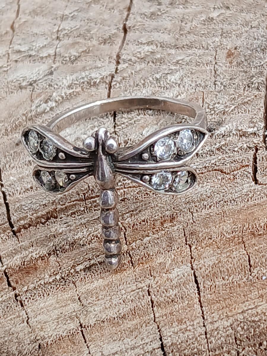 Sterling silver rings - .925 marked Dragonfly ring size 5.5 /6 and a smaller wide band Dragonfly ring Size 3.5