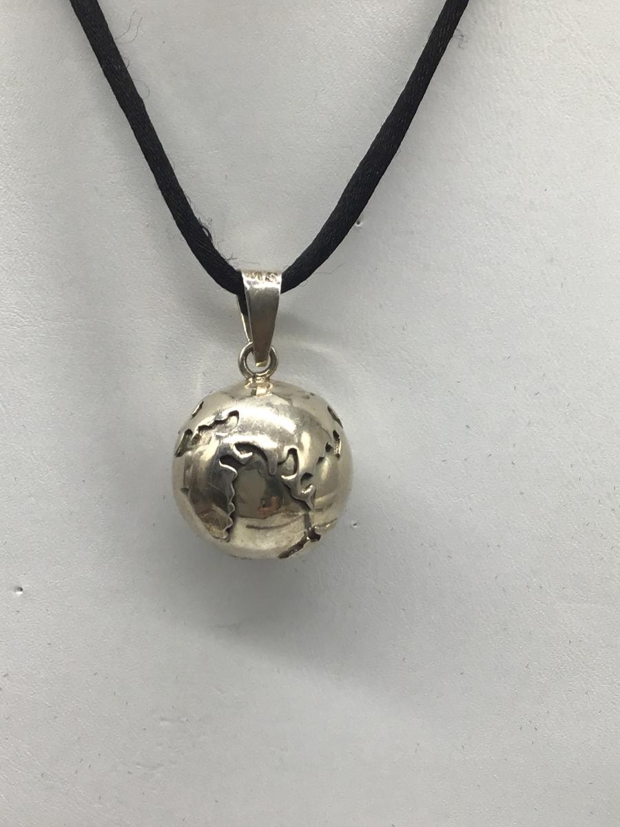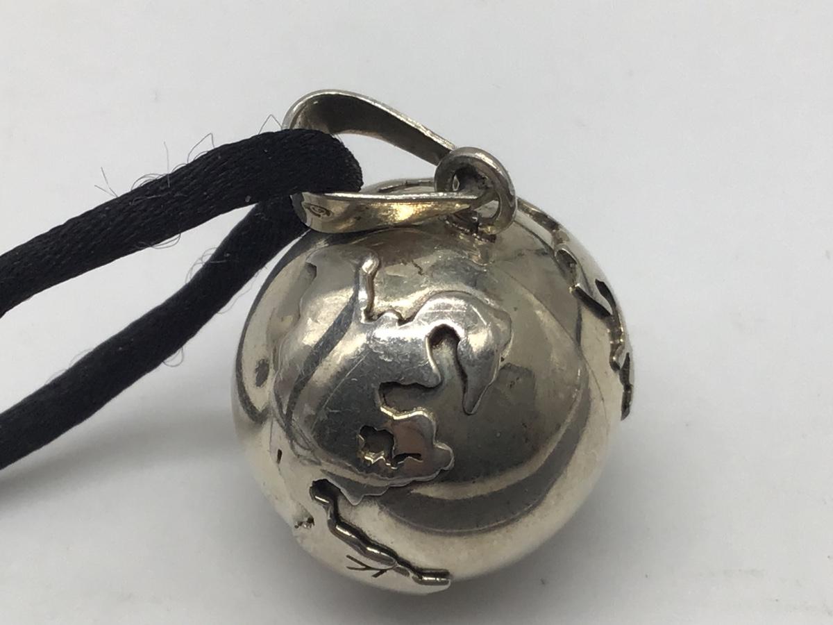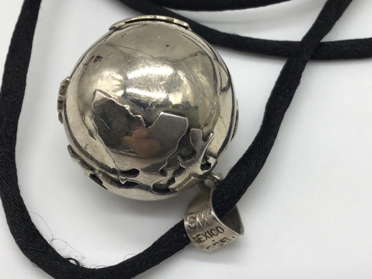 Vintage Mexico Sterling Silver 925 Globe Pendant World Harmony Ball Chime Earth