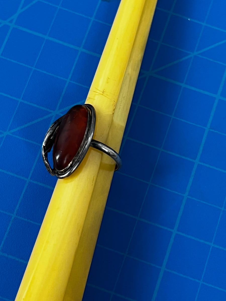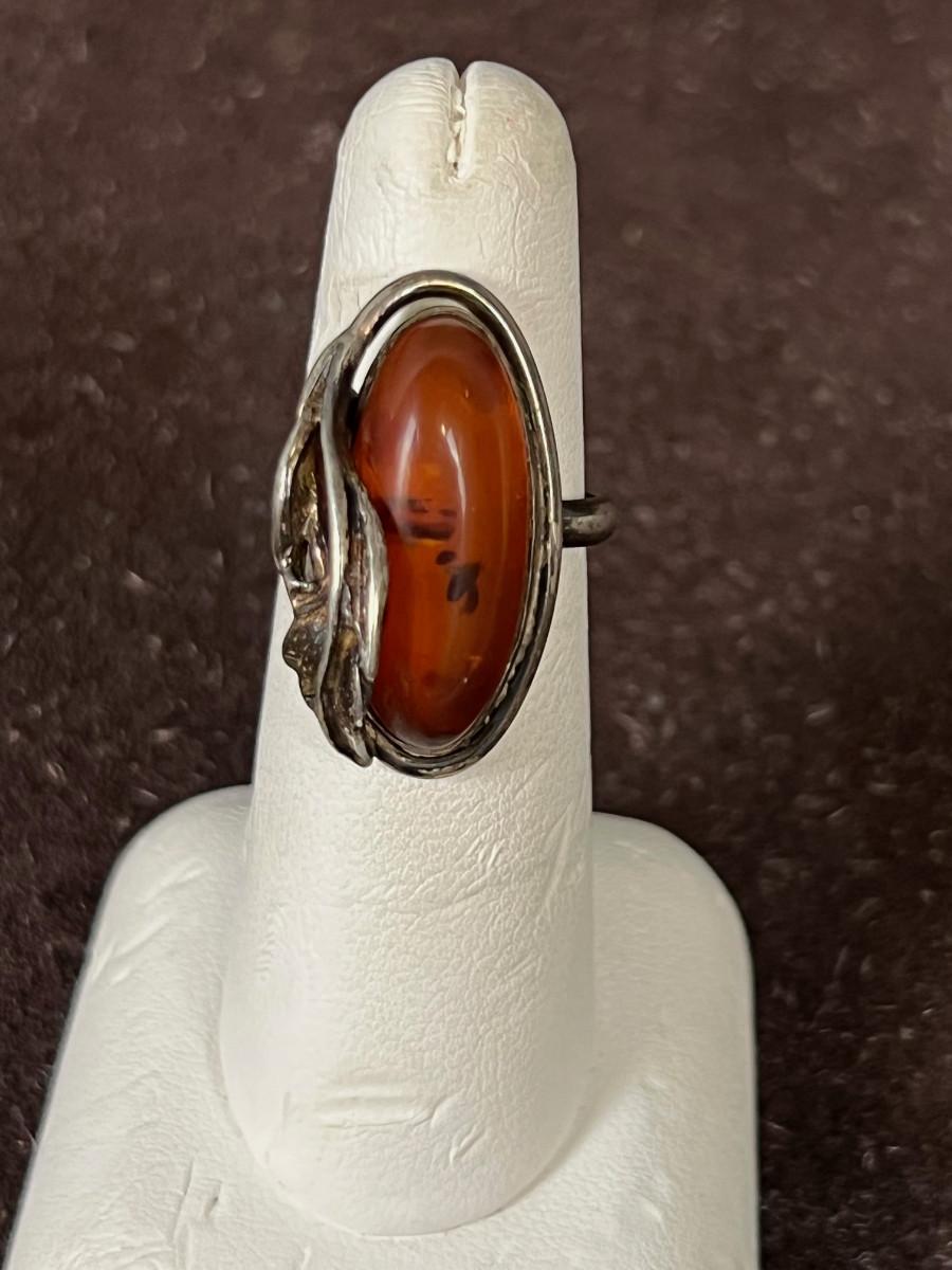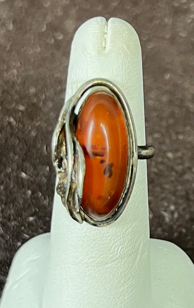 Silver & Amber RING with Leaf - Not Marked
