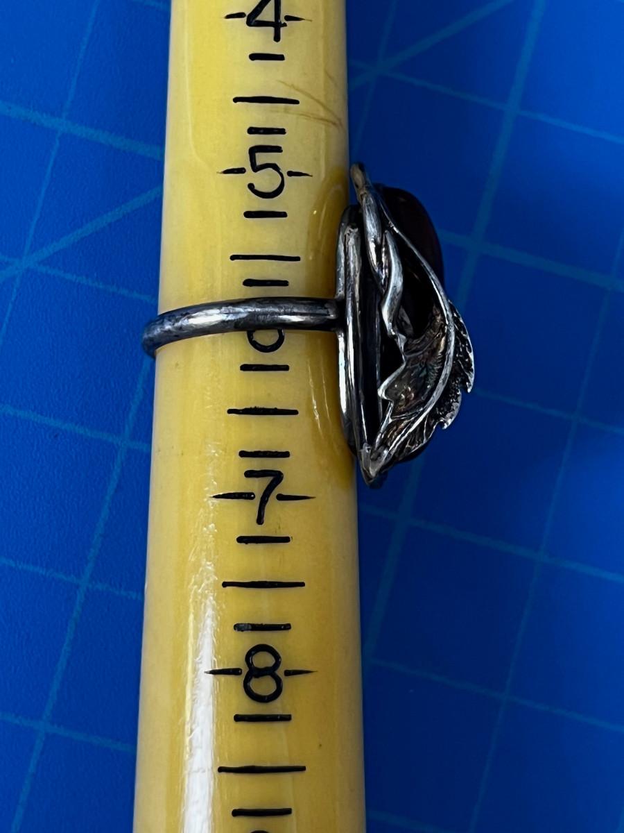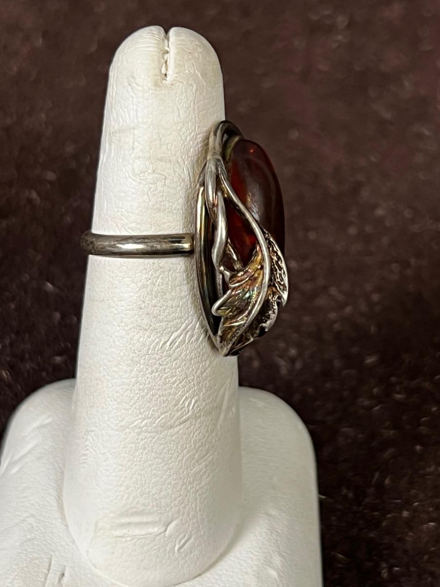 Silver & Amber RING with Leaf -  Not Marked