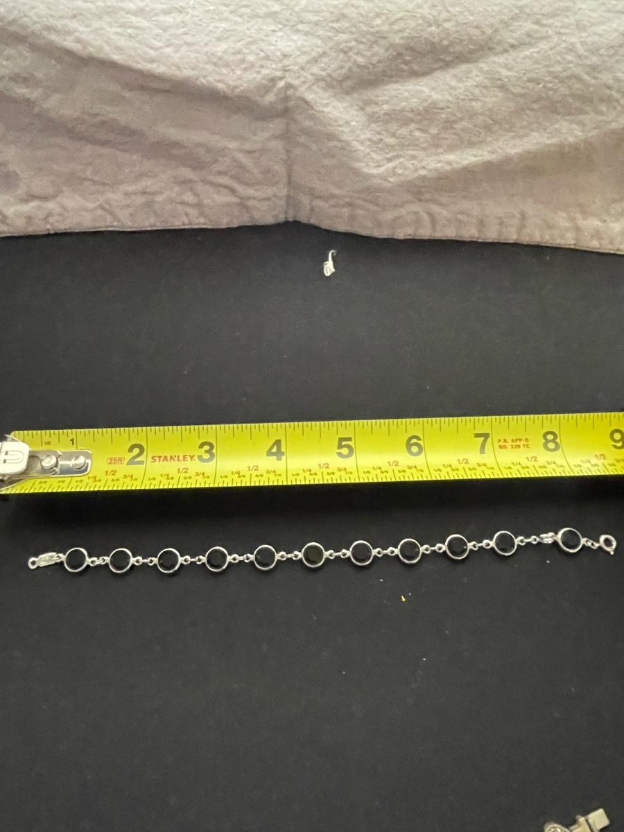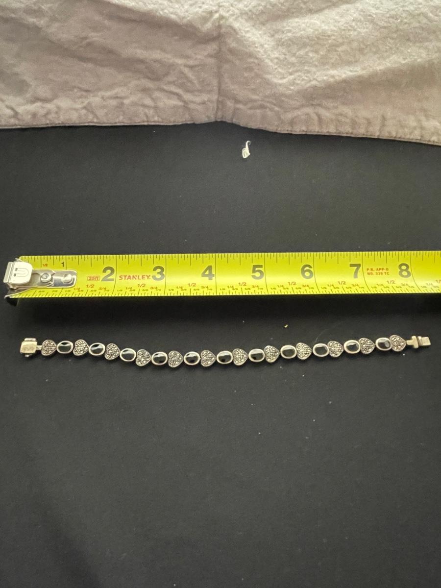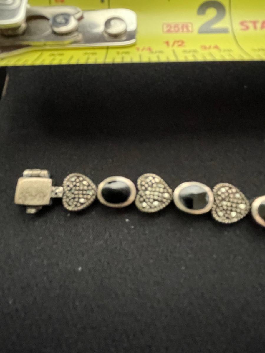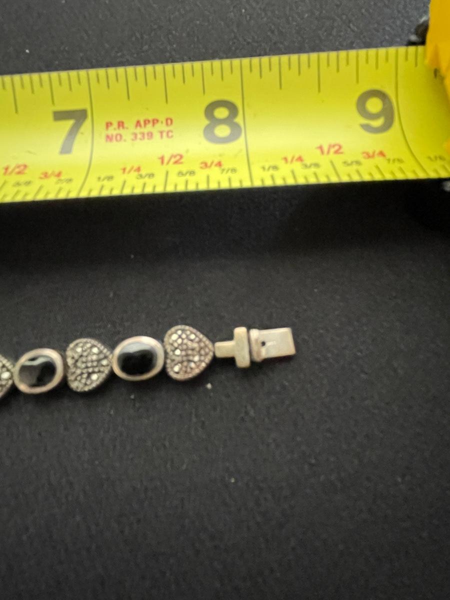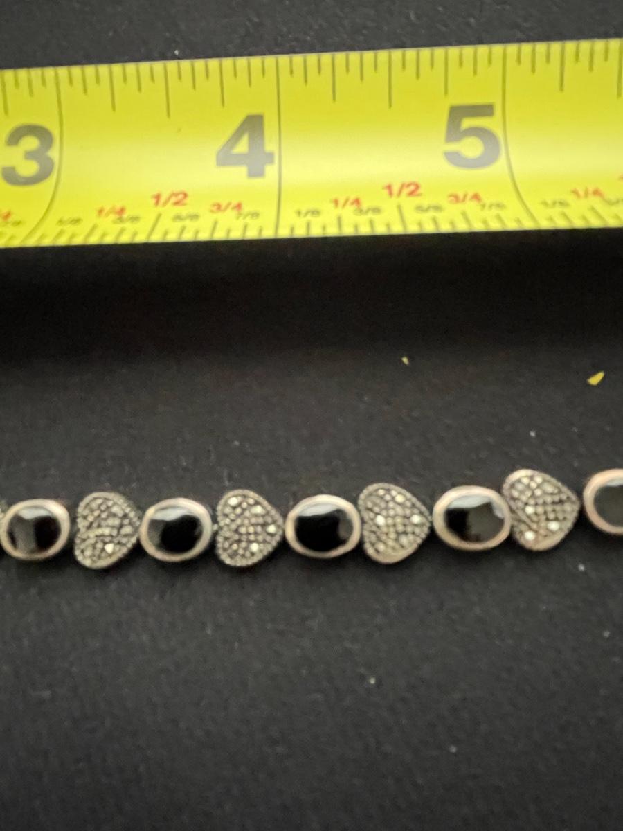 STERLING SILVER BRACELET WITH HEARTS AND BLACK STONE WEIGHT 18.6