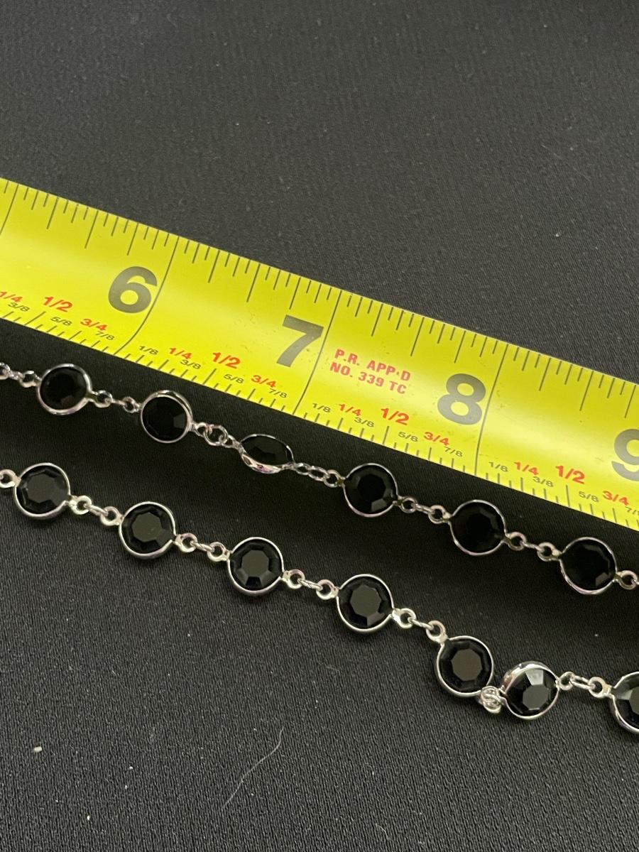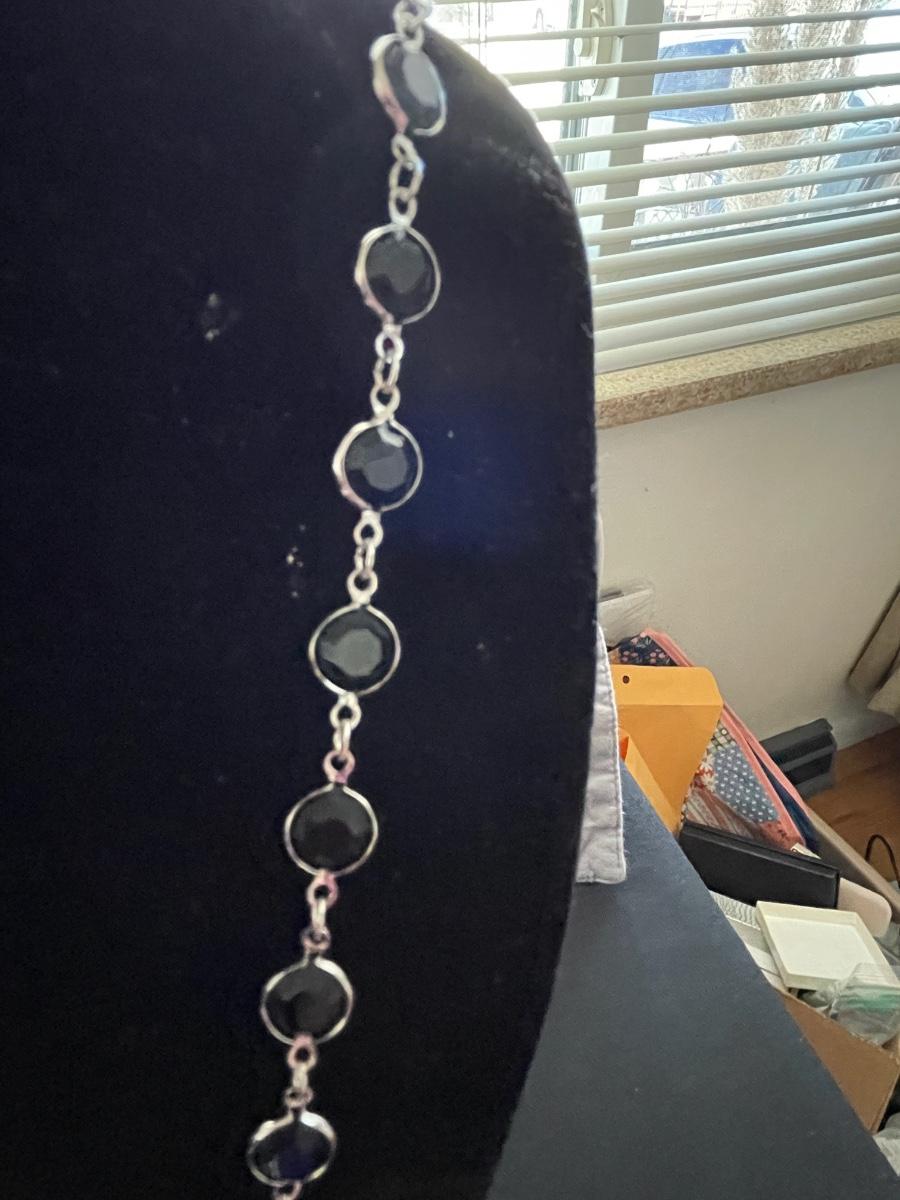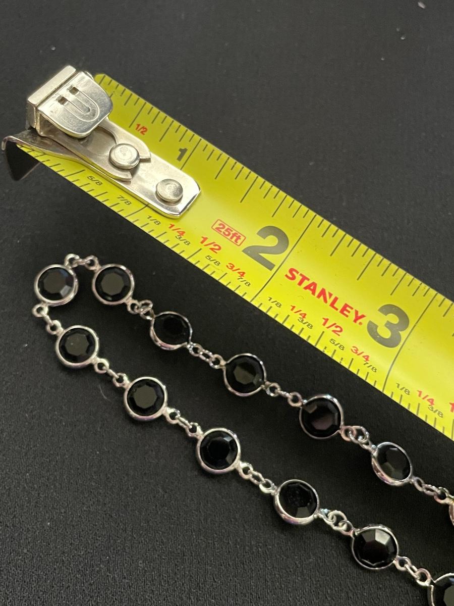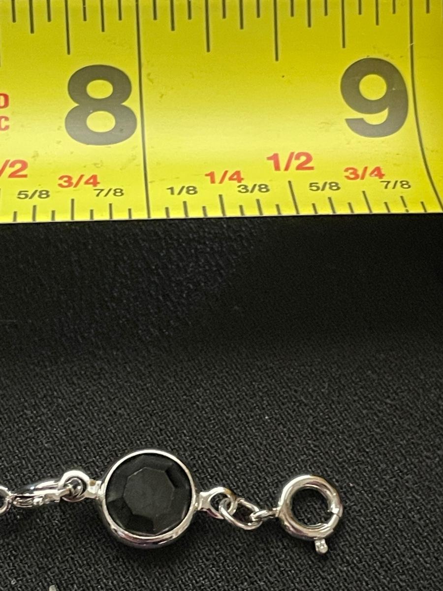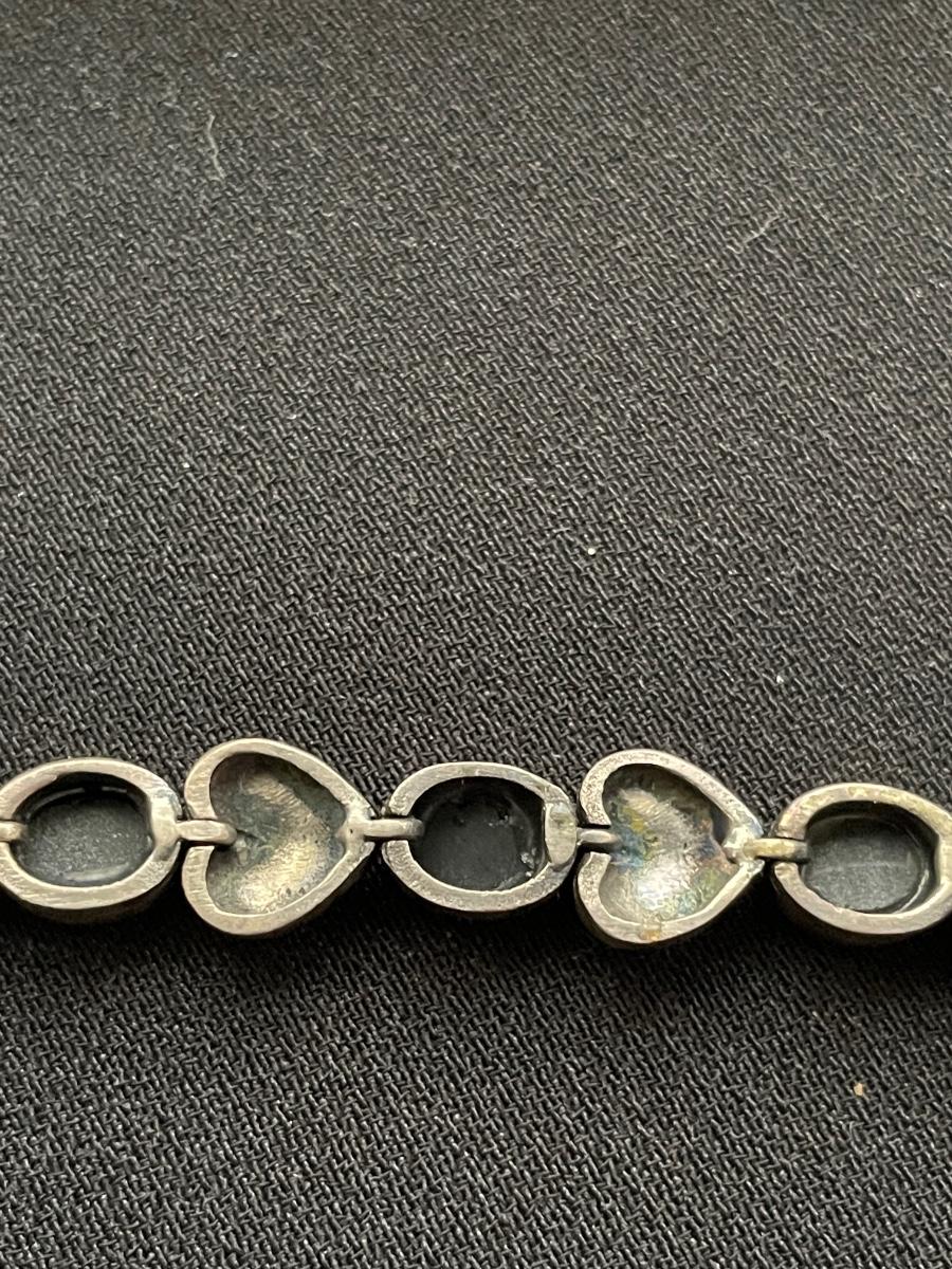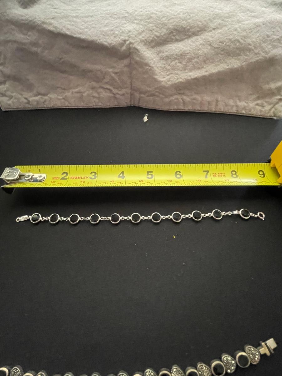 STERLING SILVER BRACELET WITH HEARTS AND BLACK STONE WEIGHT 18.6