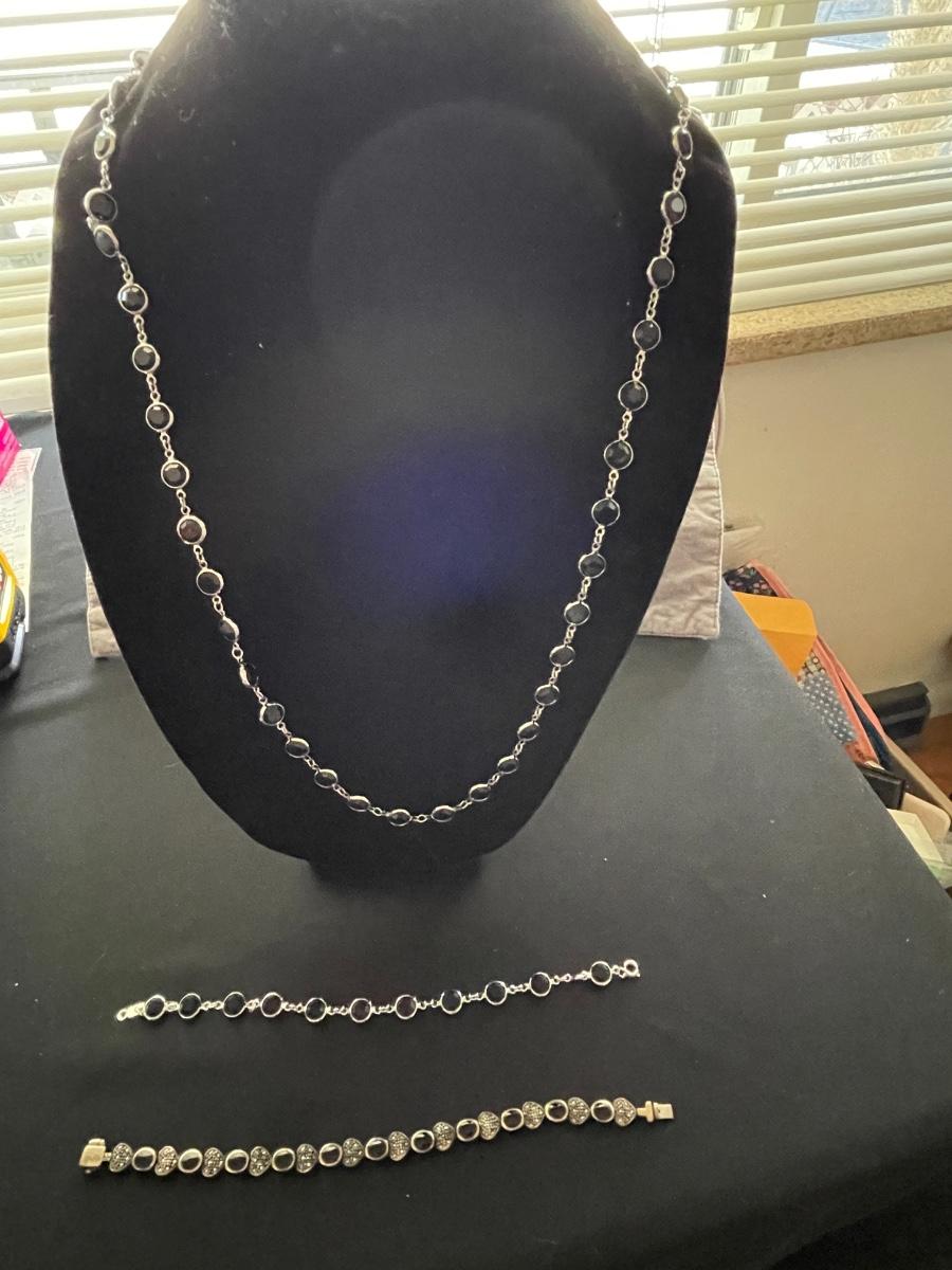 SWAROVSKI SILVER AND BLACK NECKLACE WITH BRACELET, SS BRACELET