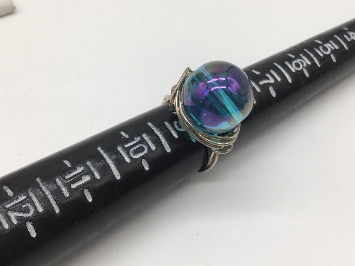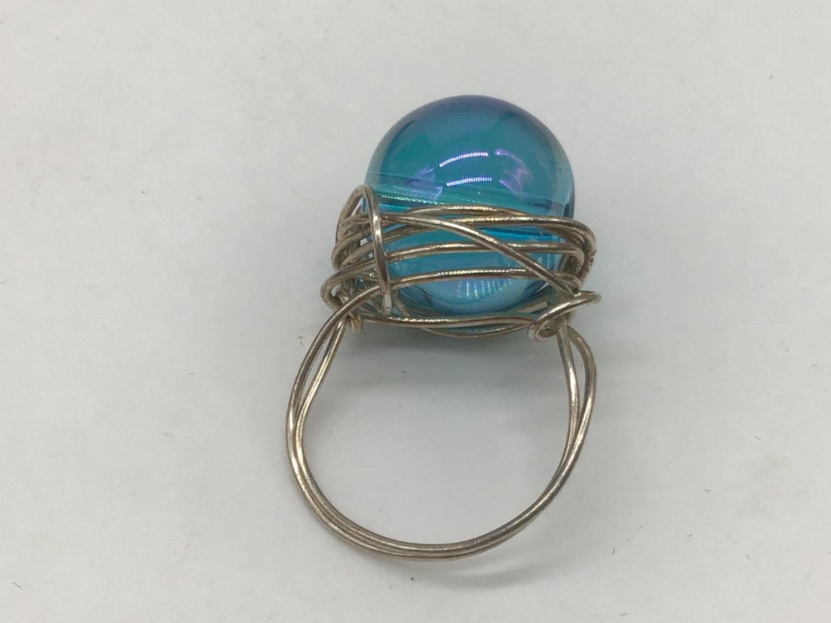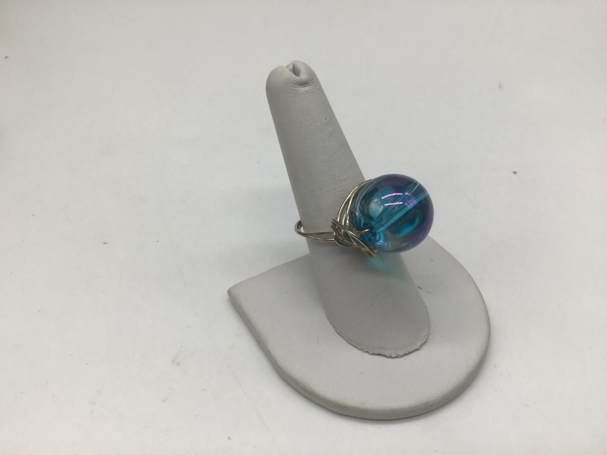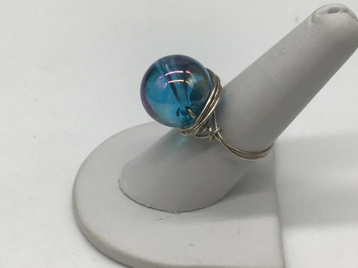 Silver and Blue Glass Ball Ring