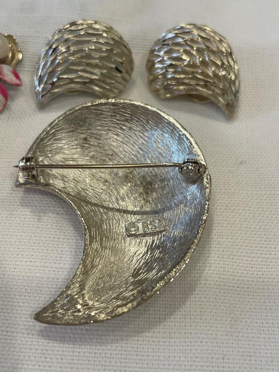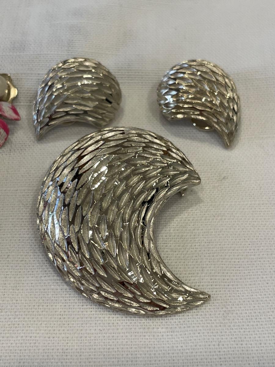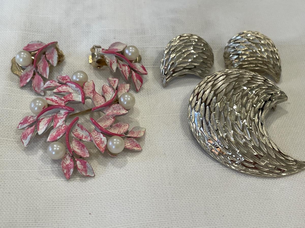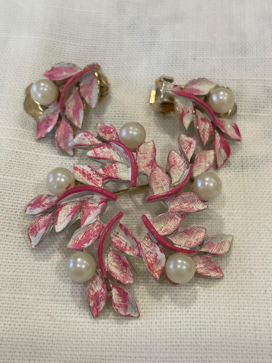 Silver and pink vintage brooch and clip on sets