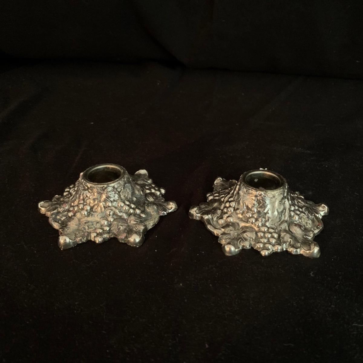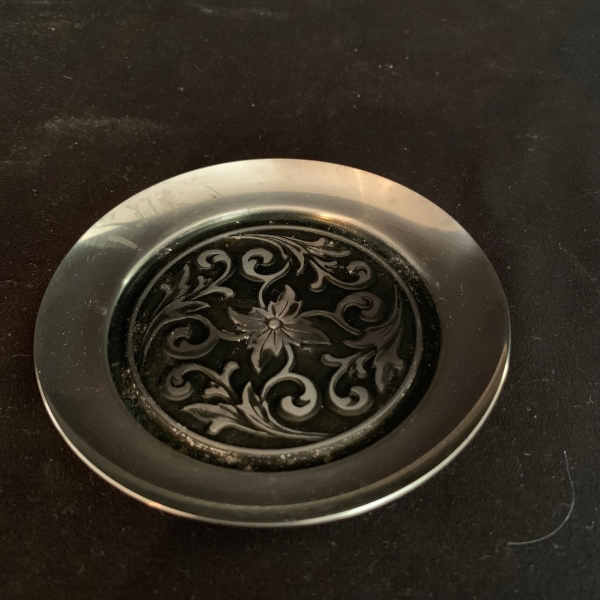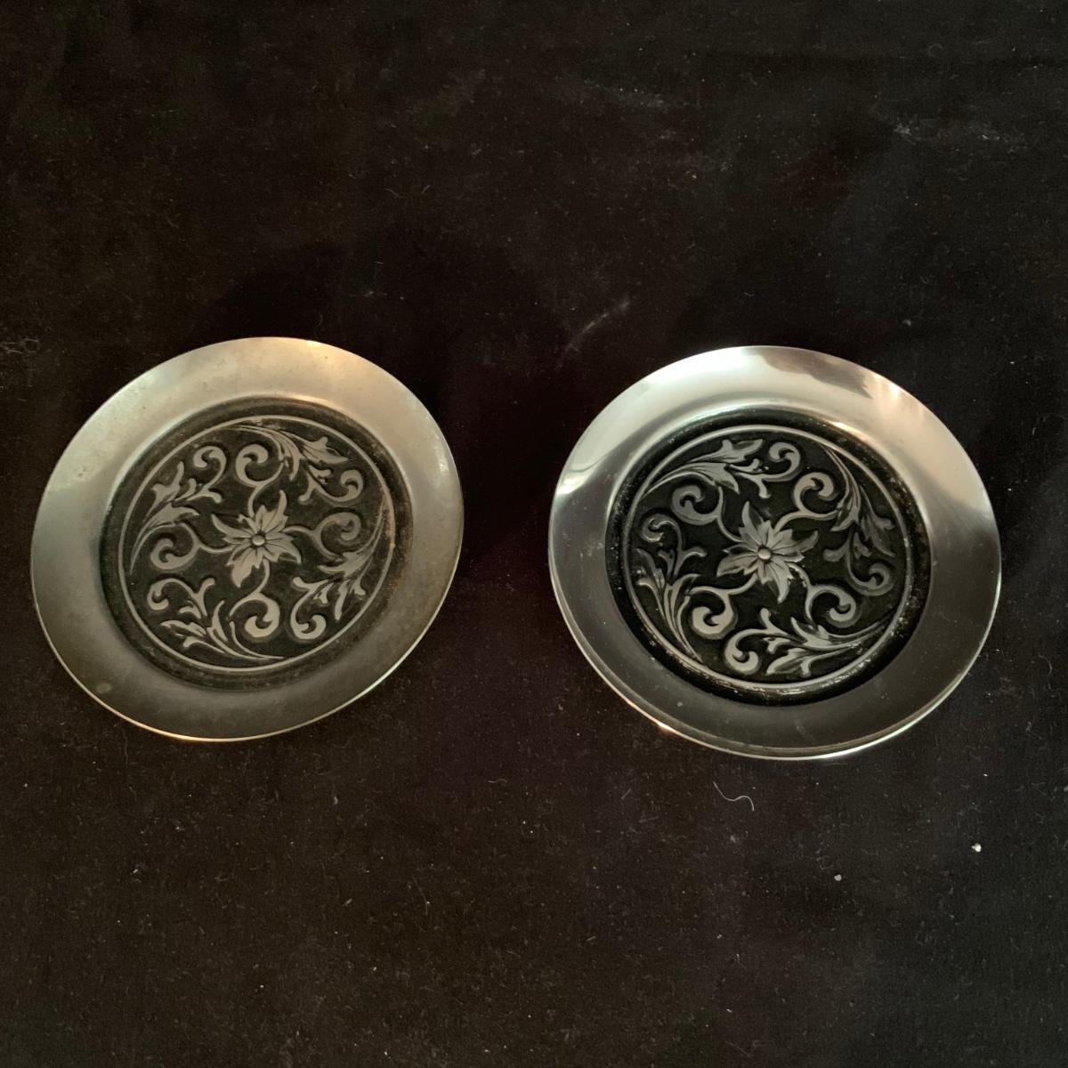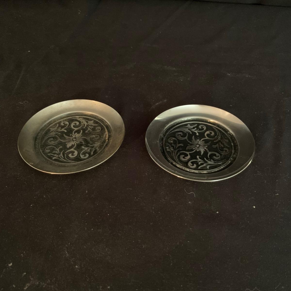 This lot includes a large array of silverplate and stainless steel decorated items. Included are ashtrays, candle holders, phone covers, mini trays, and more. The phone covers are silver plated. Some of the trays are stainless steel and some are silverplate. The largest tray measures about 5in. Shipping available.