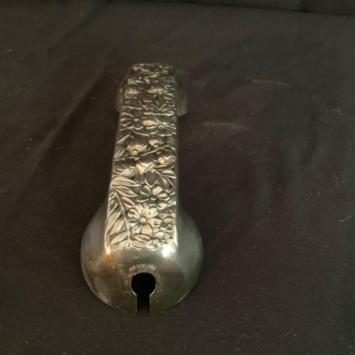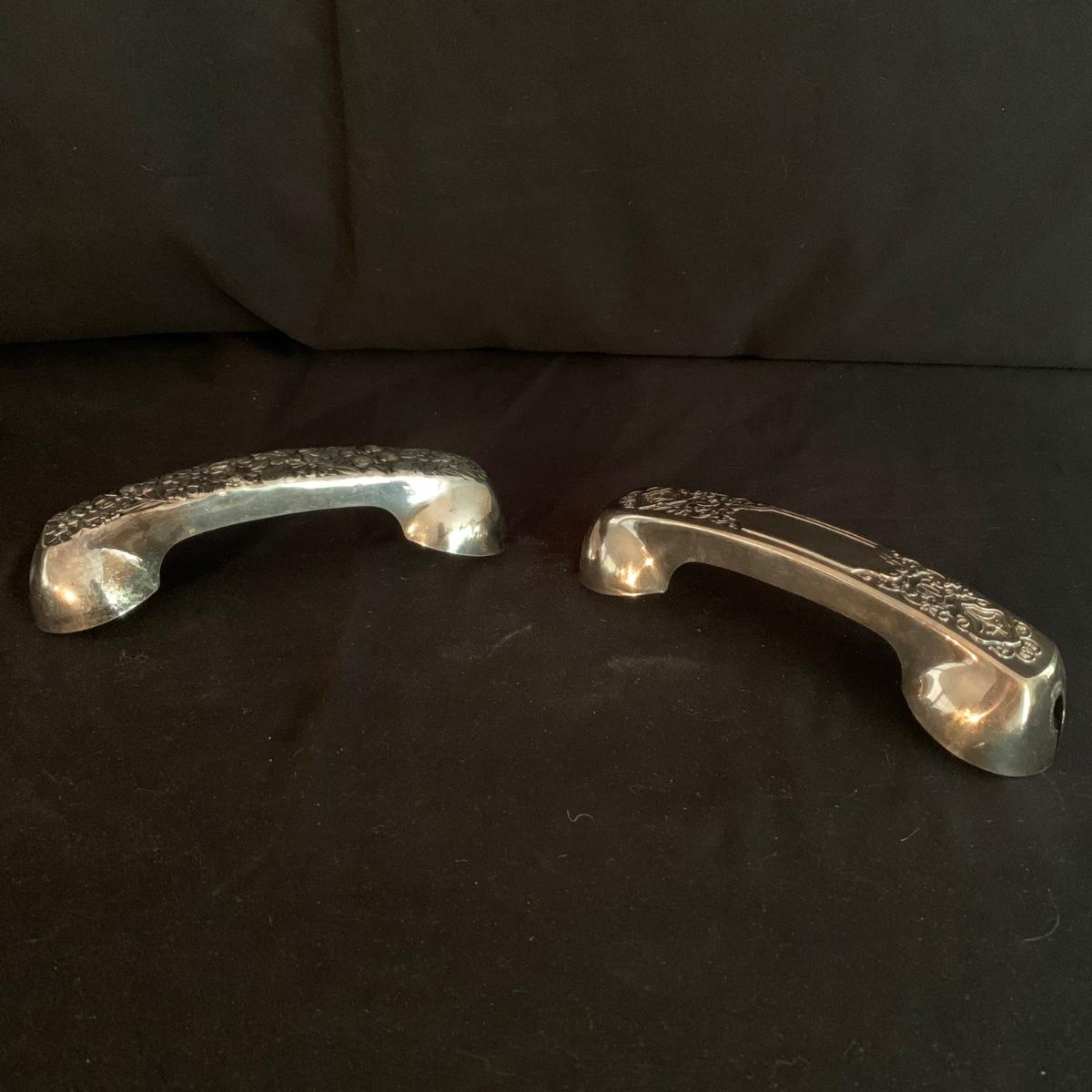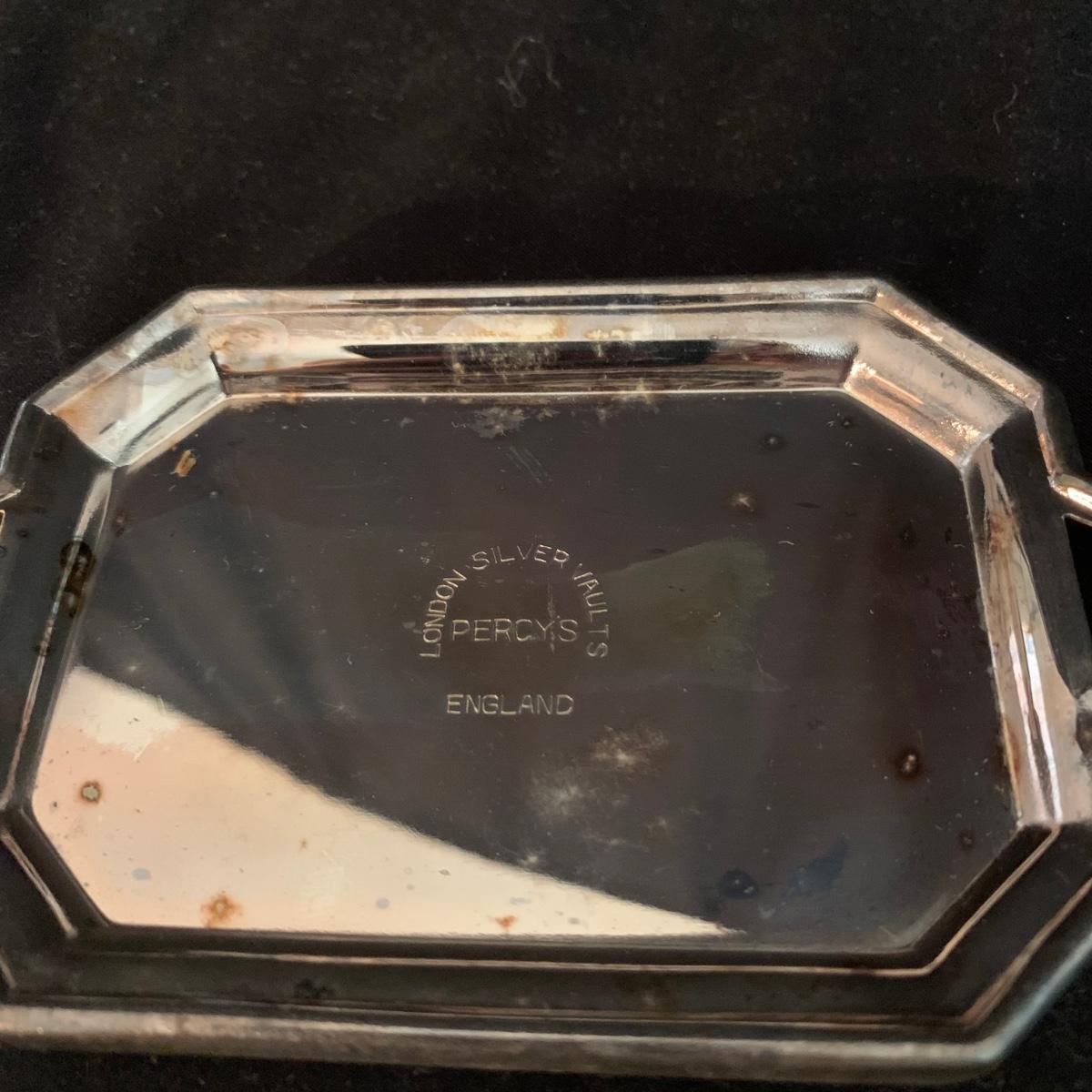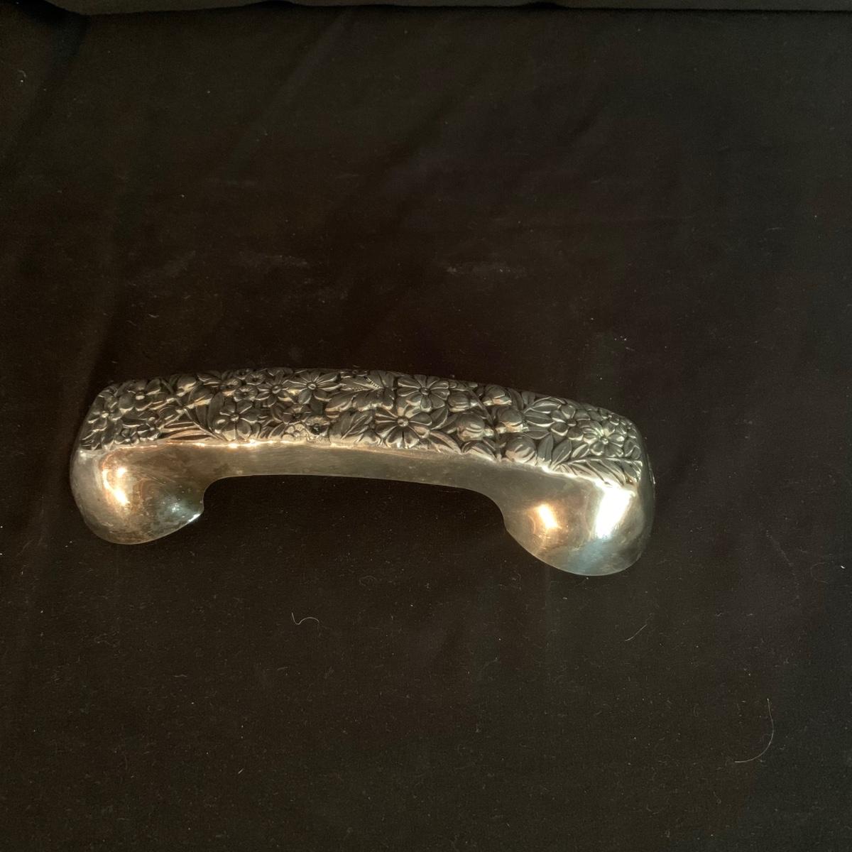 This lot includes a large array of silverplate and stainless steel decorated items. Included are ashtrays, candle holders, phone covers, mini trays, and more. The phone covers are silver plated. Some of the trays are stainless steel and some are silverplate. The largest tray measures about 5in. Shipping available.