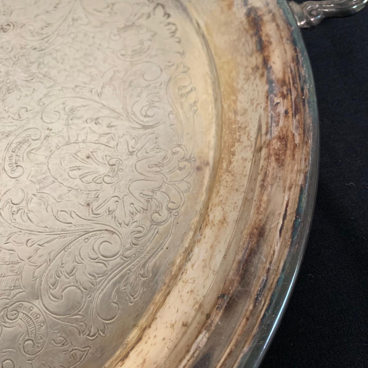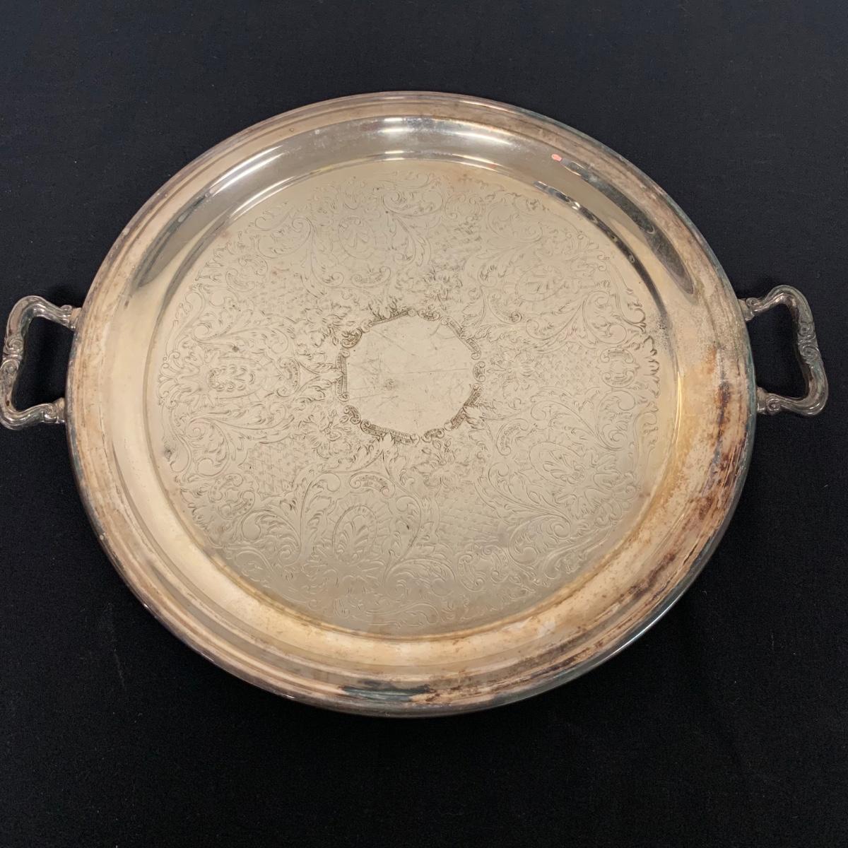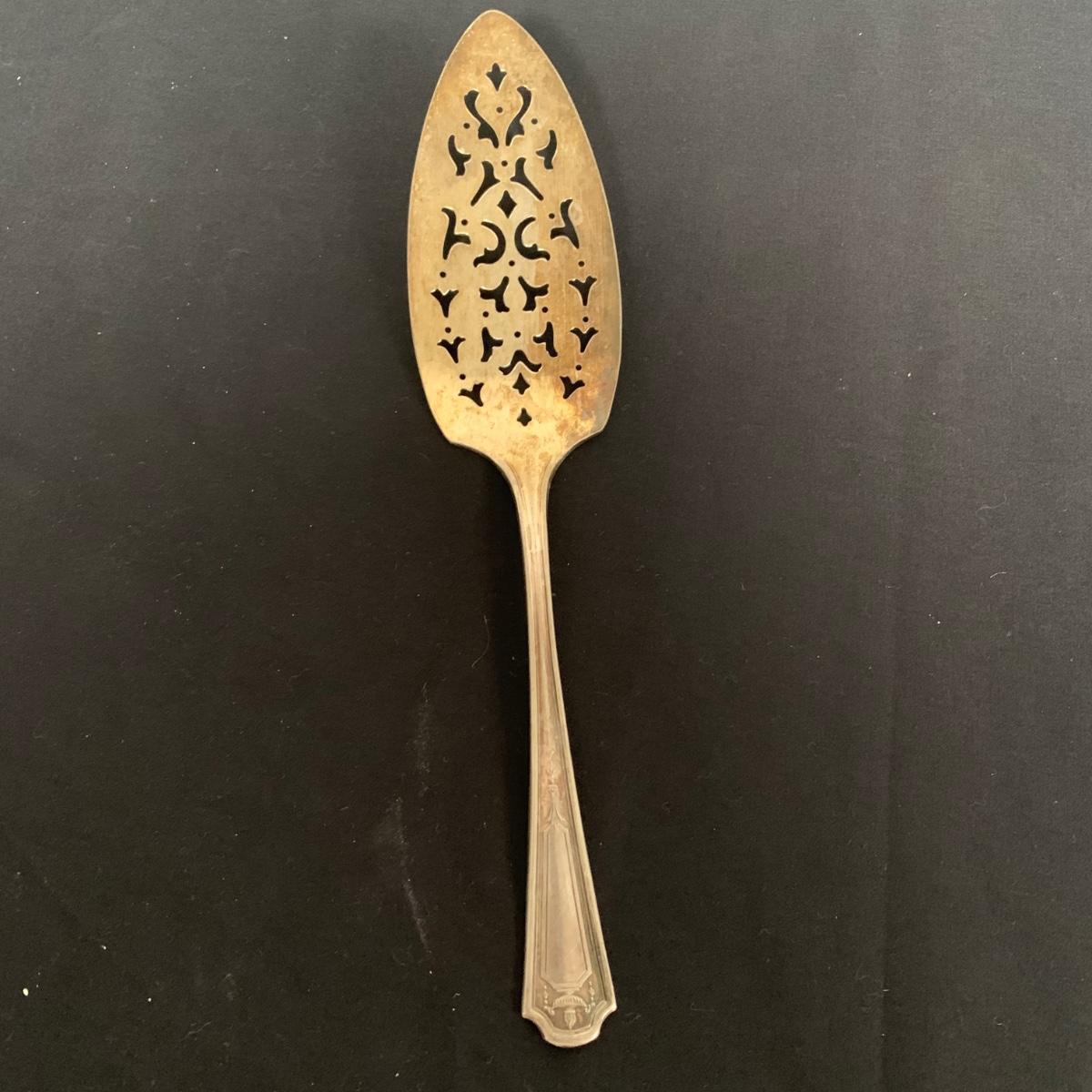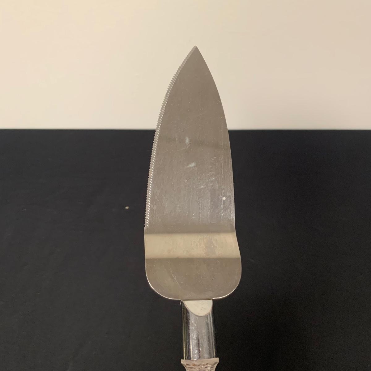 This lot includes serving trays, two cake servers, a pair of salt and pepper shakers, and a small bowl. The lot features silver pieces, stainless steel pieces, sterling pieces, and more, see images. Some of the pieces need to be cleaned and polished. The largest serving tray measures about 12in x 14in. Shipping available.