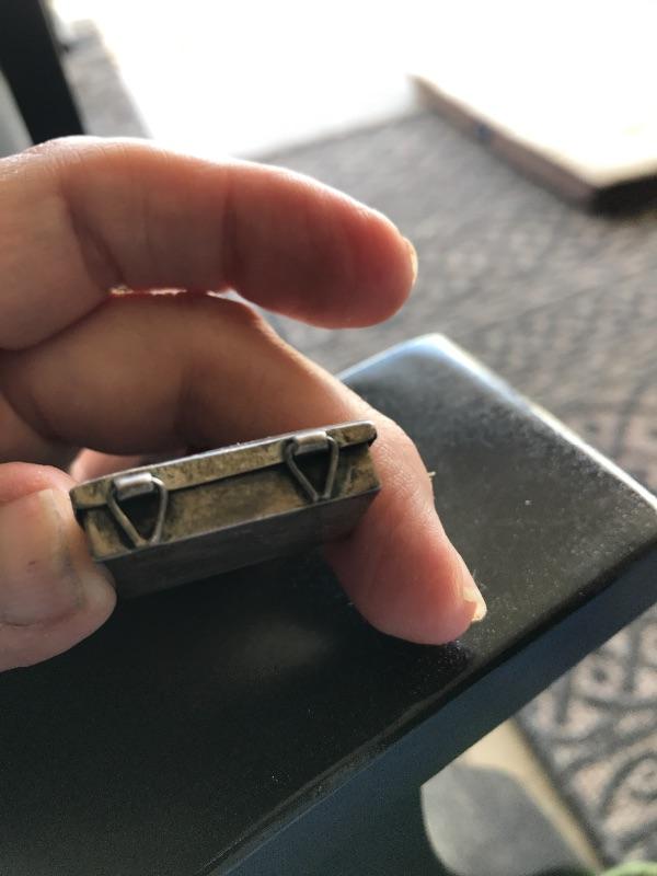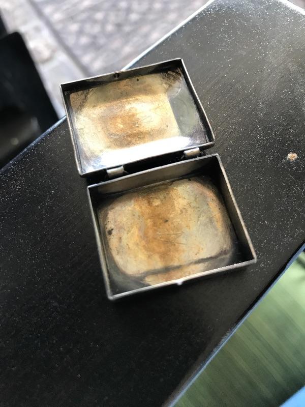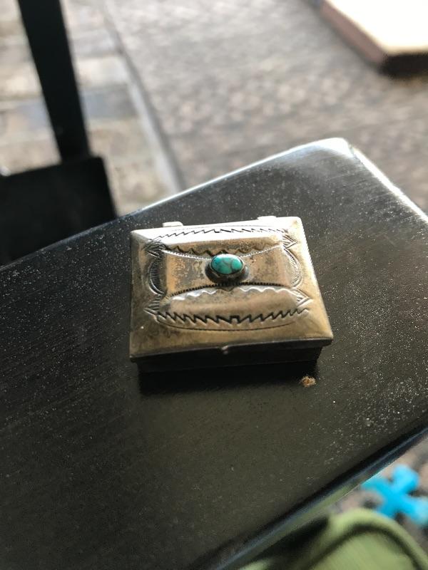 1 1/8” x 7/8” x 1/4”. Sterling and turquoise hinged box. Navajo
