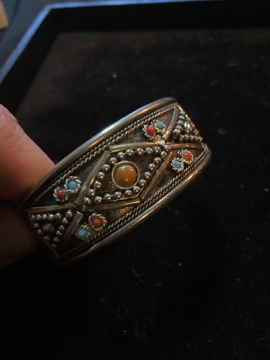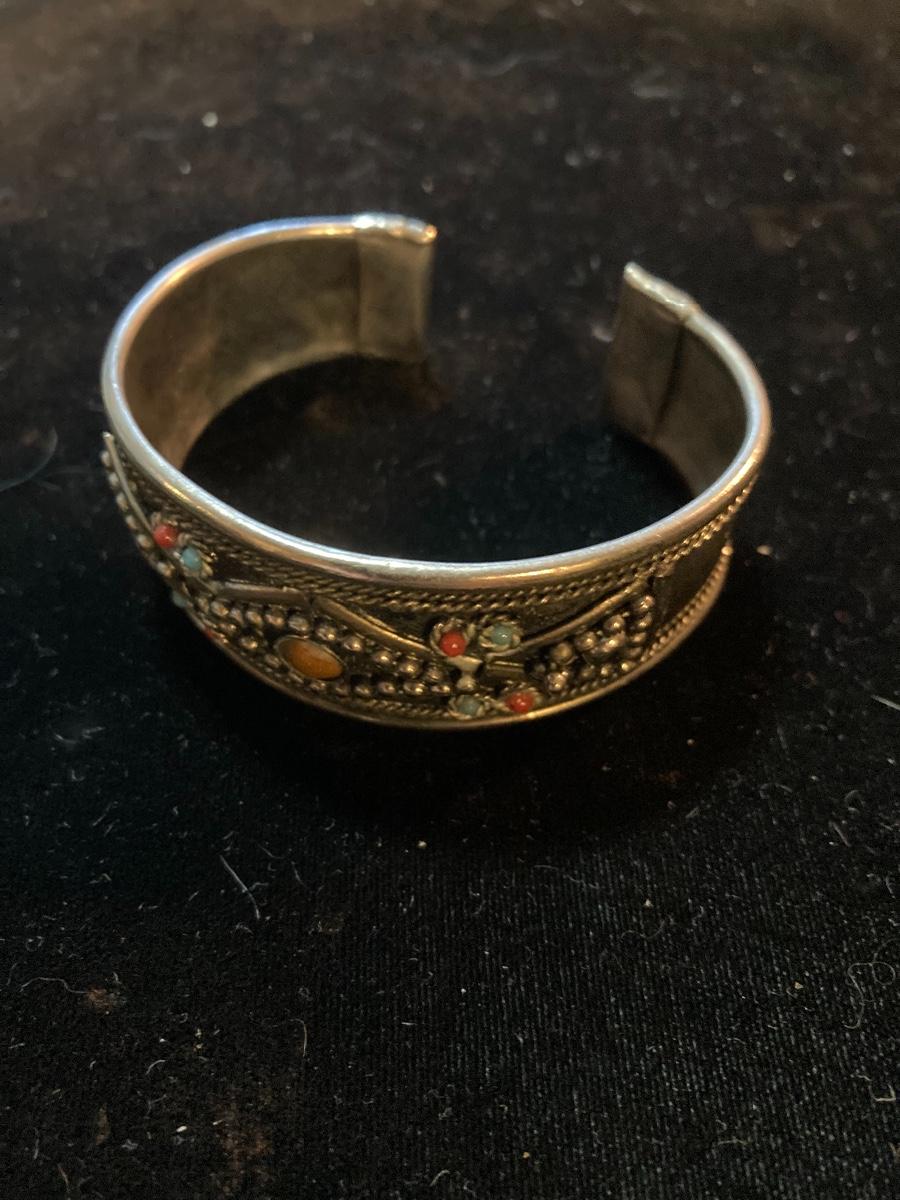 Silver Bangle with Multi Colored Stone Style Design
