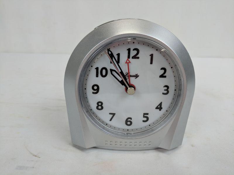 Silver Battery Operated Alarm Clock, Equity Brand, Snooze/Light