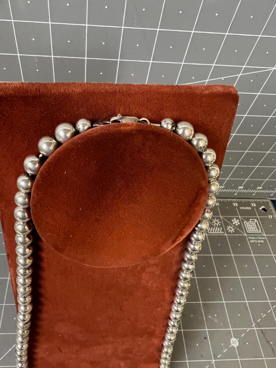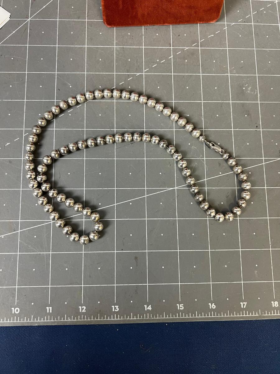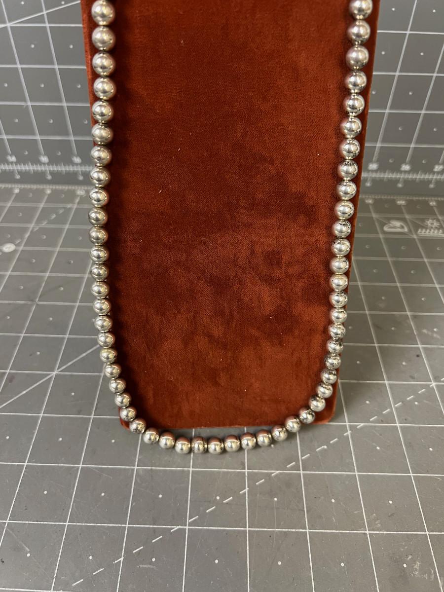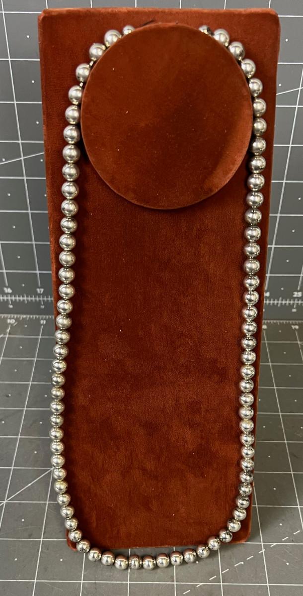 Silver Bead Necklace 24" Long Round Beads
