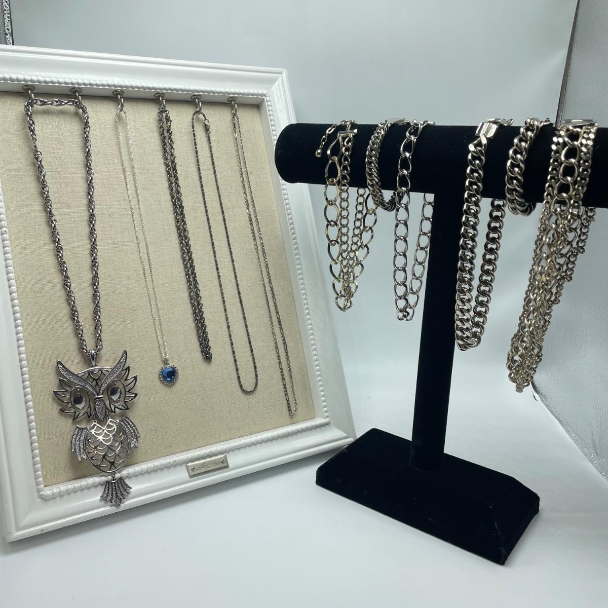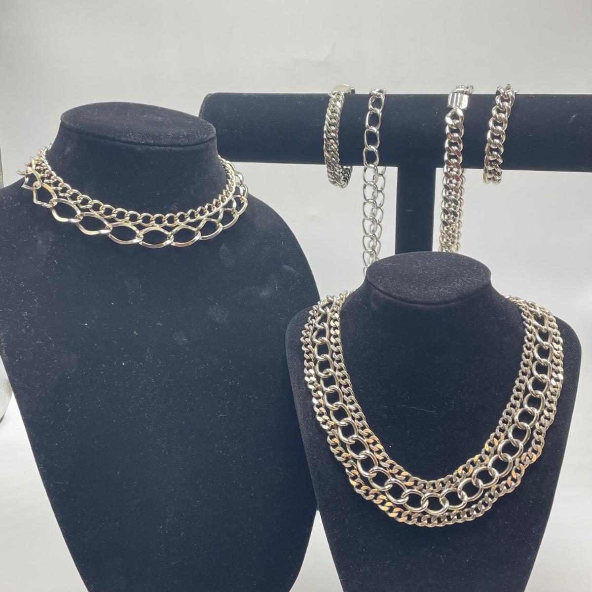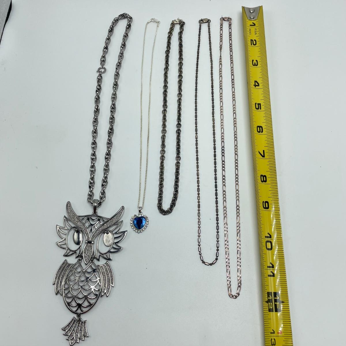 A lovely collection of necklaces and bracelets. The three necklaces with the thinnest chains are marked 925, it was difficult to get a clear photo of the markings. The thinnest of the 925 necklaces is 18” long without the Solvar pendant. All known markings are shown in photos. All sales are final. No returns or refunds. Please bid accordingly. Shipping available.
