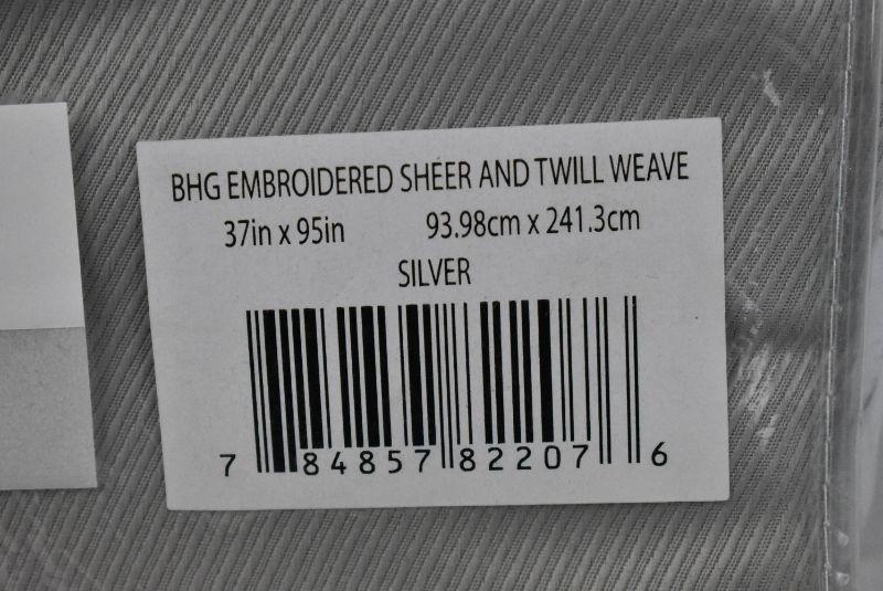 Silver BH&G Embroidered Sheer & Twill Weave 4 Pack, 37"x95" - New