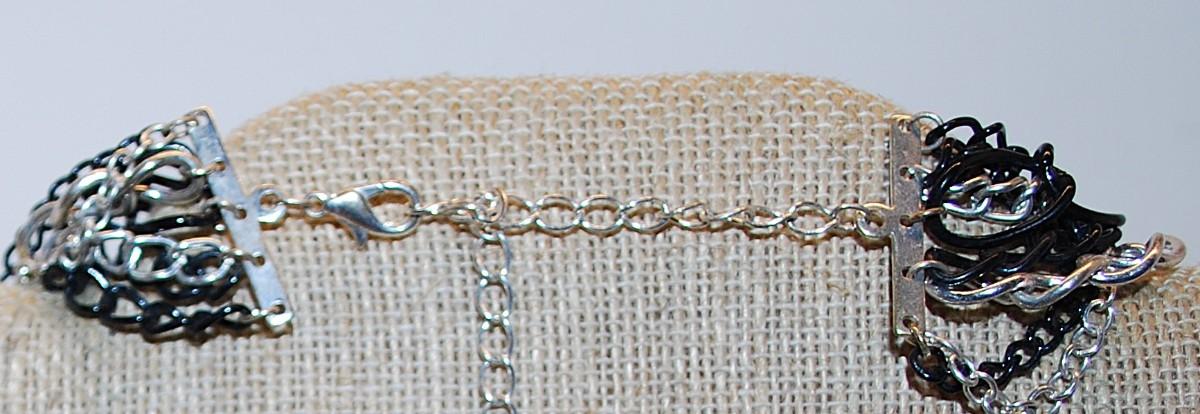 Silver & Black Colored 10 Strand NECKLACE with 2 Strand Holders and a Lobster Clasp 23" L