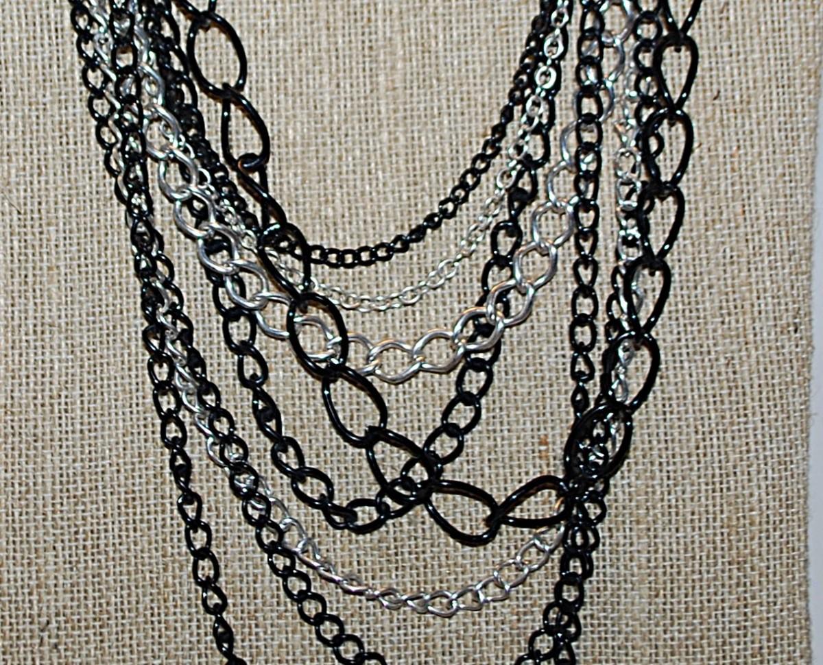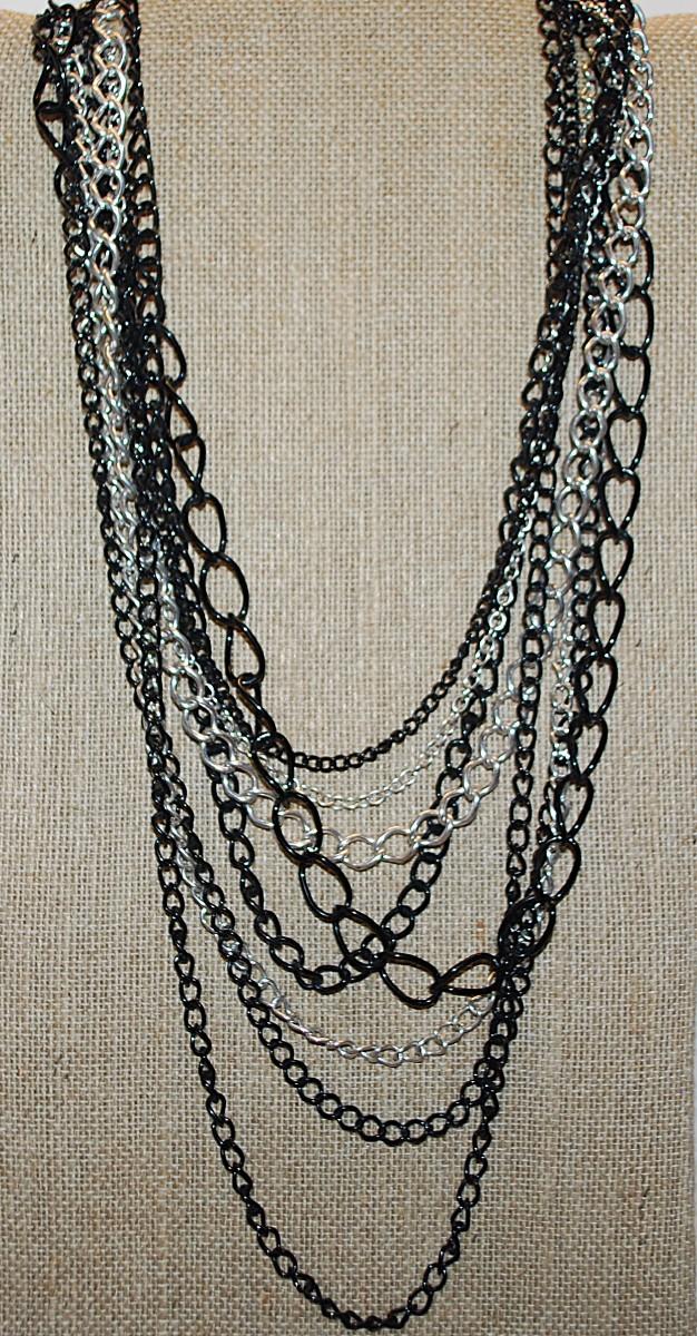 Silver & Black Colored 10 Strand NECKLACE with 2 Strand Holders and a Lobster Clasp 23" L