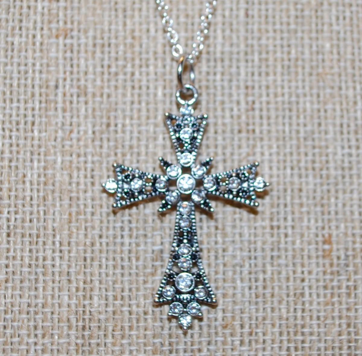 Silver & Black Cross PENDANT (1½" x 1") on a Silver Tone Adjustable Necklace Chain 18-14" L