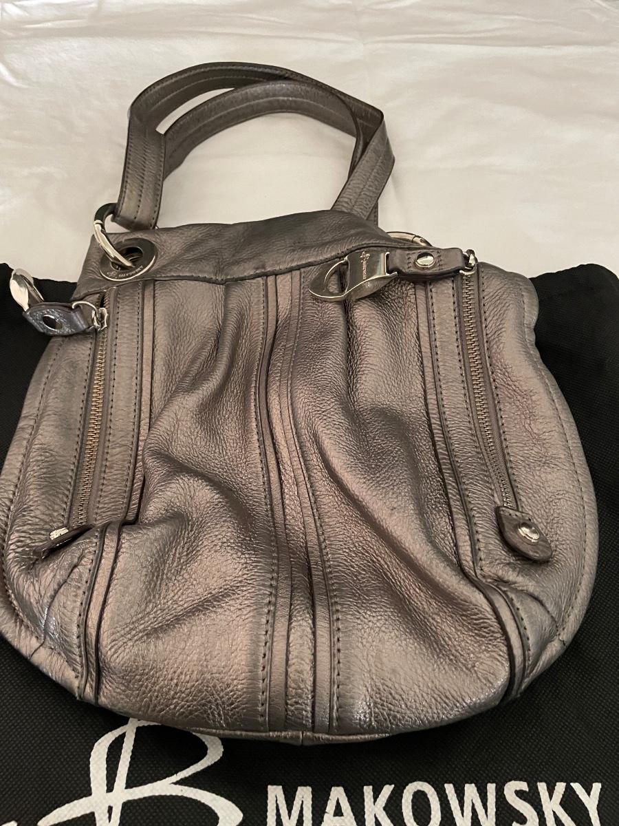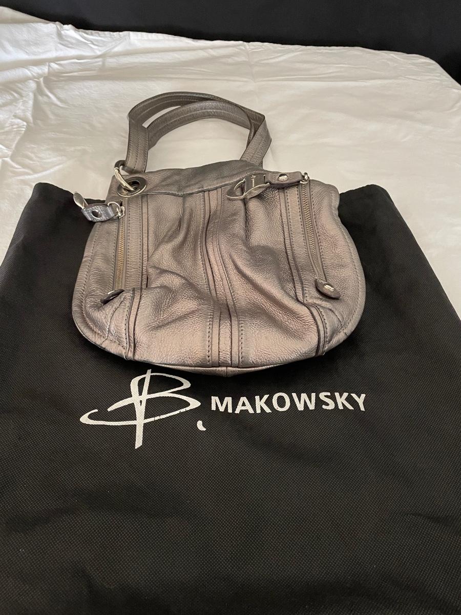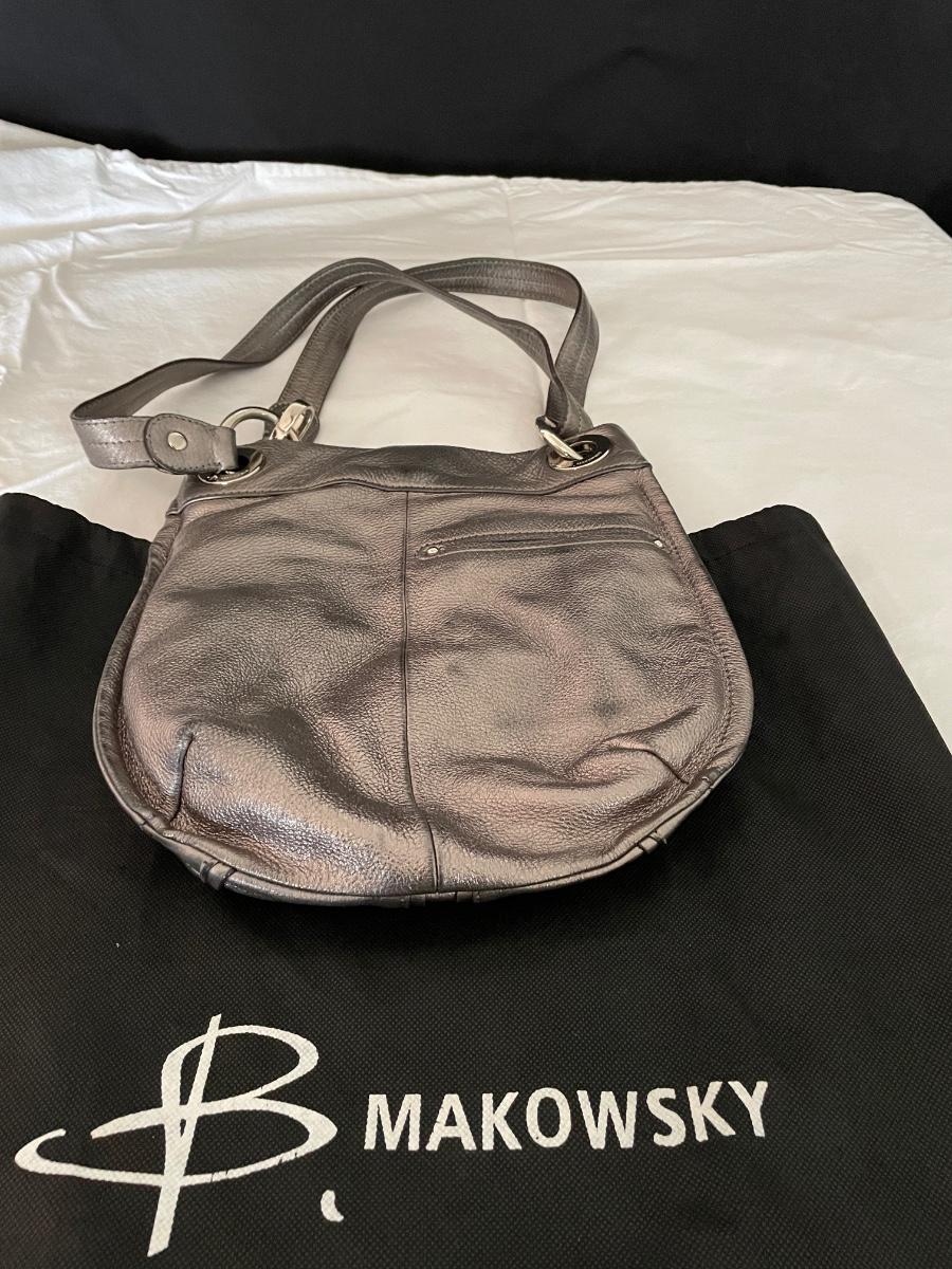 SILVER SLIGHTLY USED B,MAKOWSKY SHOULDER PURSE