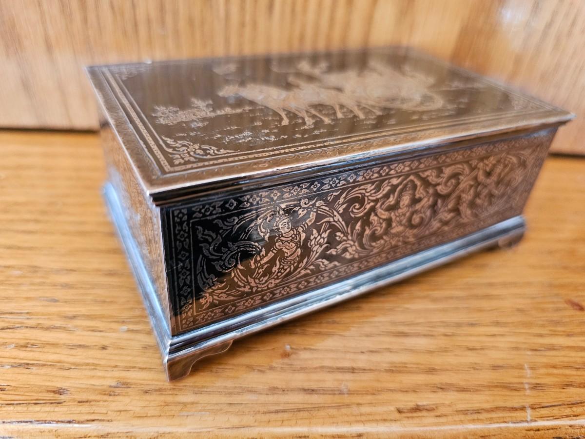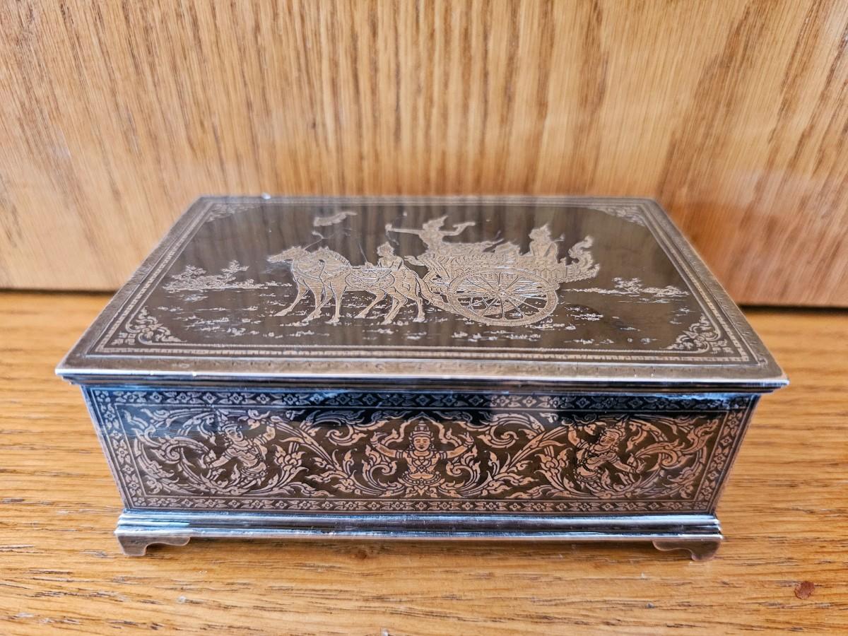 Silver box Made in Thailand Wood lined Thai Nakon Sterling Siam