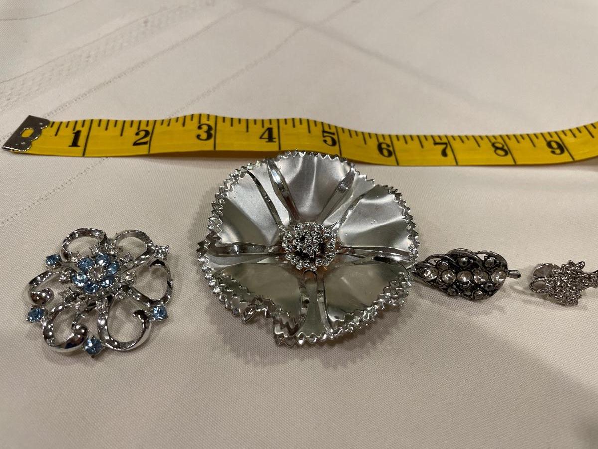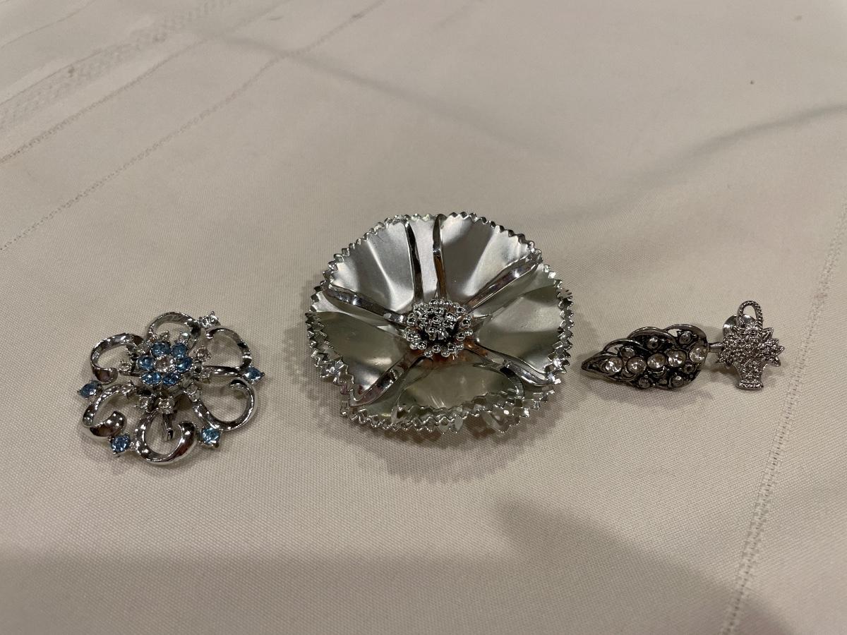 Silver brooches and pins