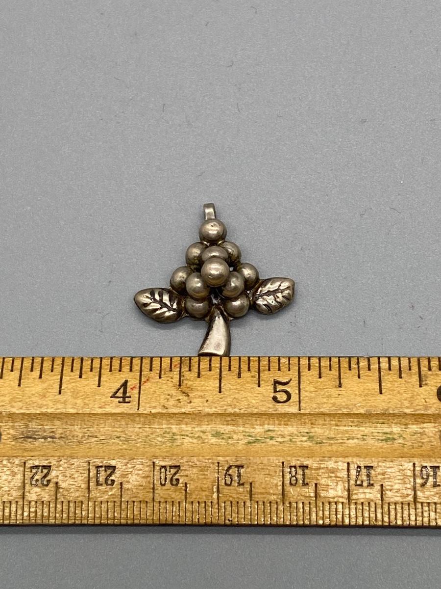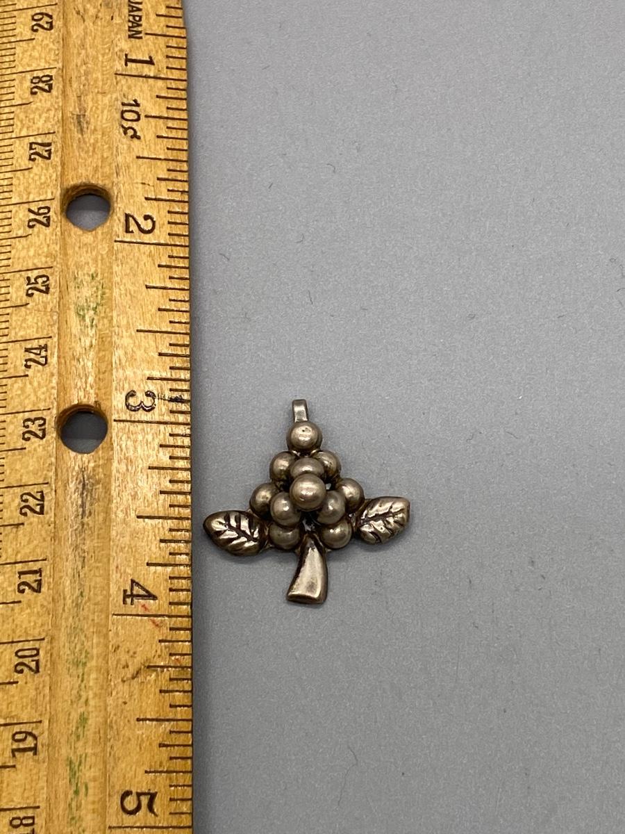 Bunch of grapes pendant charm. Marked silver on the back. Made in Mexico. About 1" size.