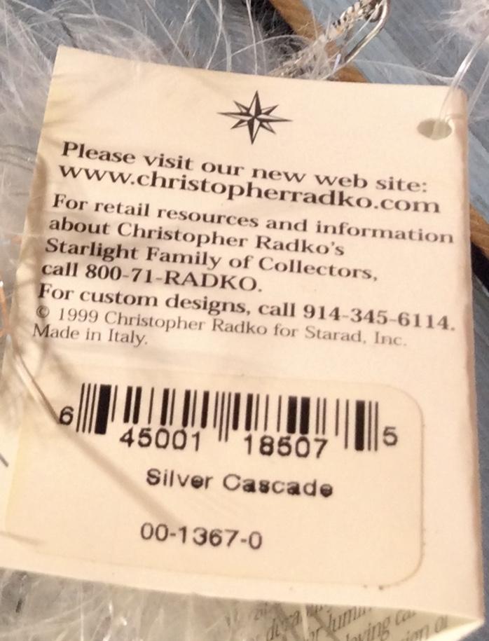 “Silver Cascade”  Christopher Radko Christmas ornament