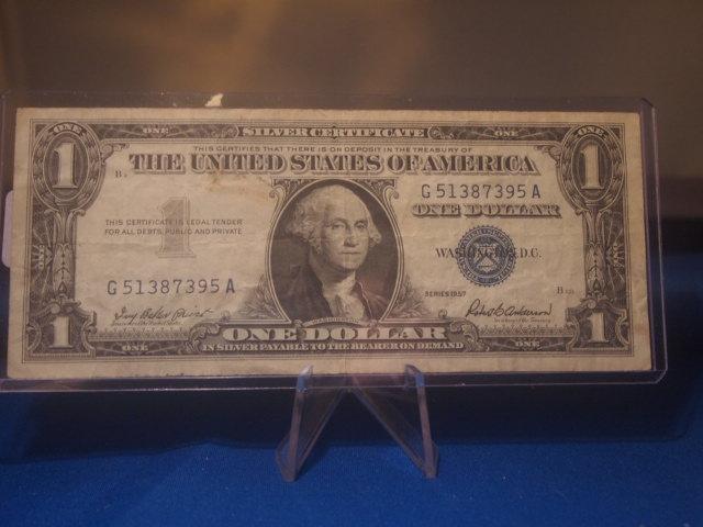 1957 Silver Certificate in Good condition in Bill Protector
