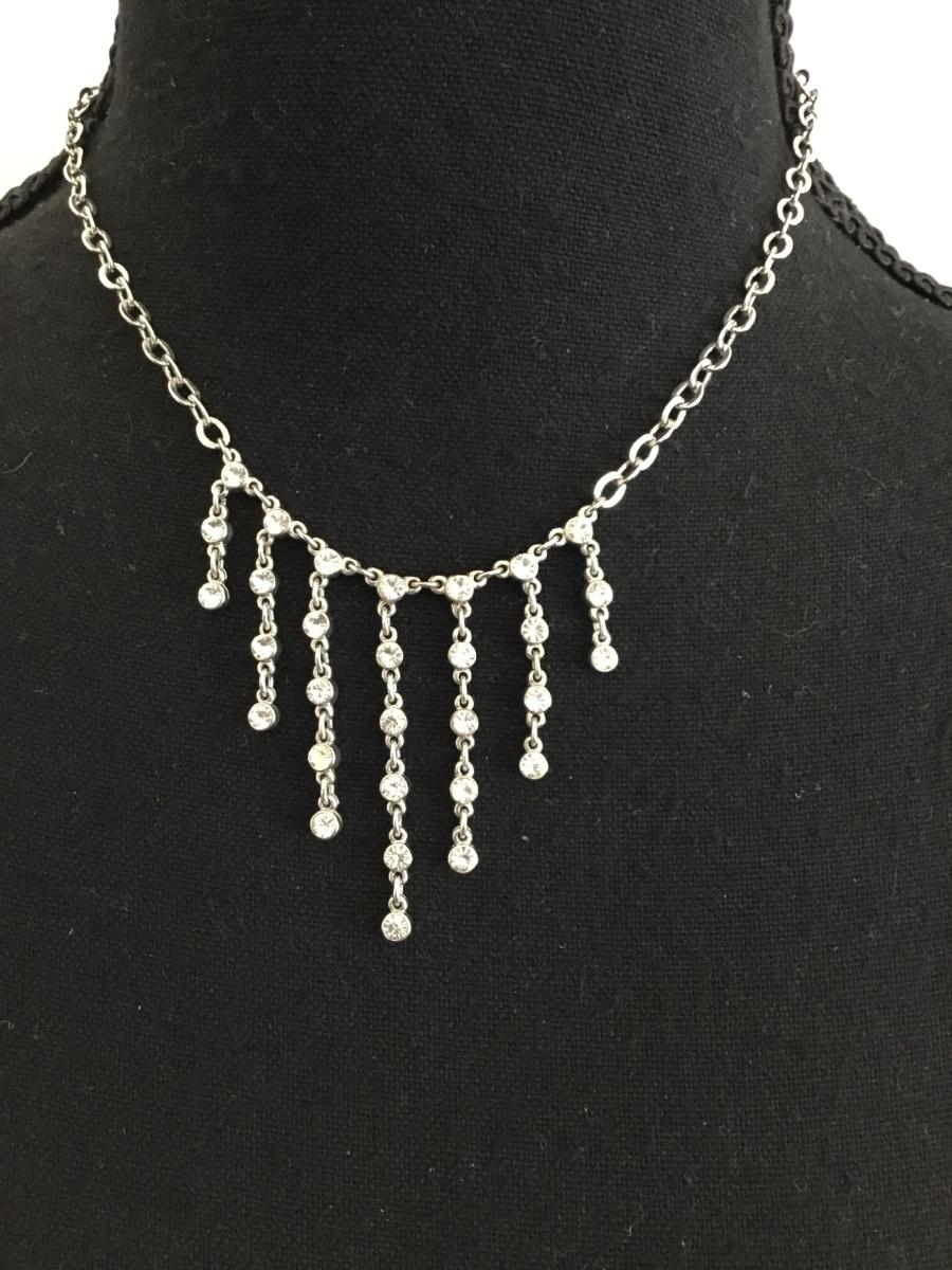 Silver tone chain rhinestone necklace