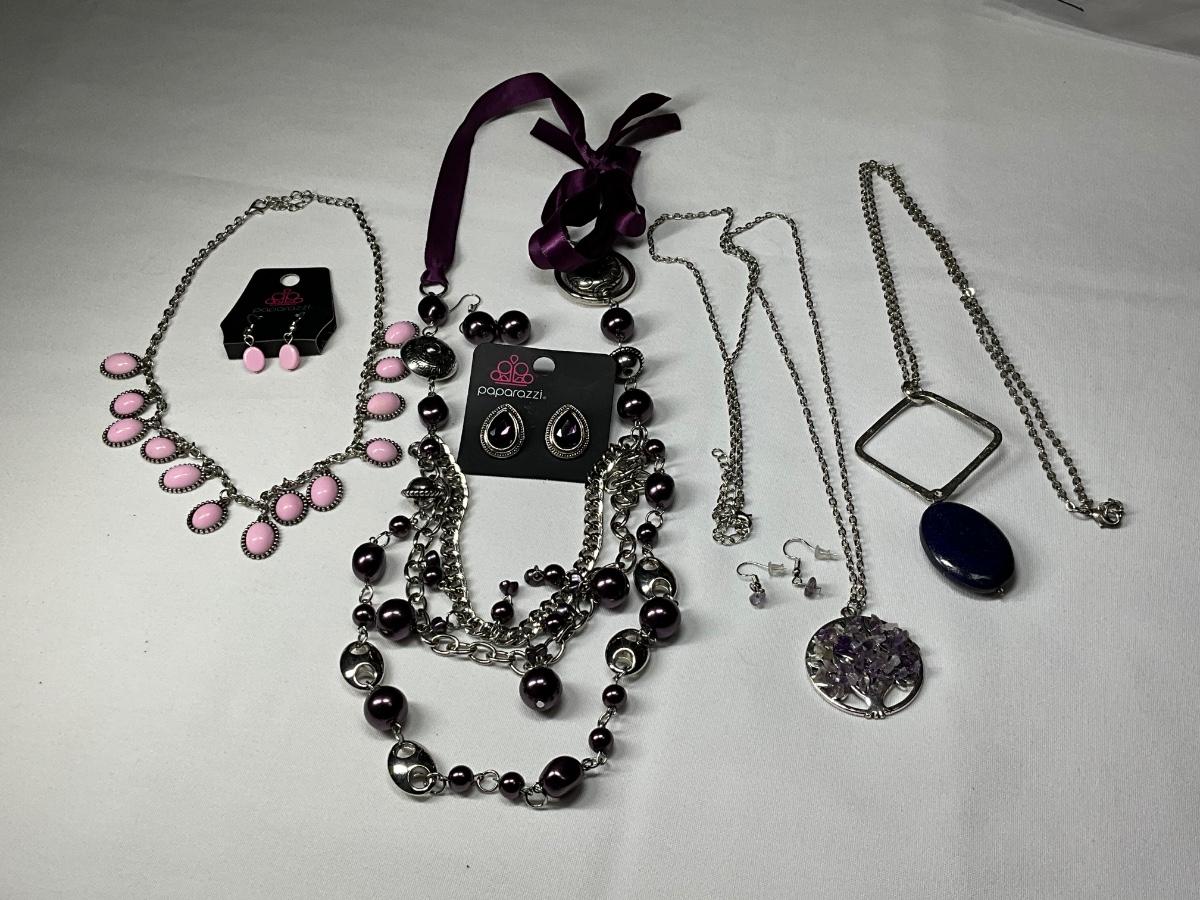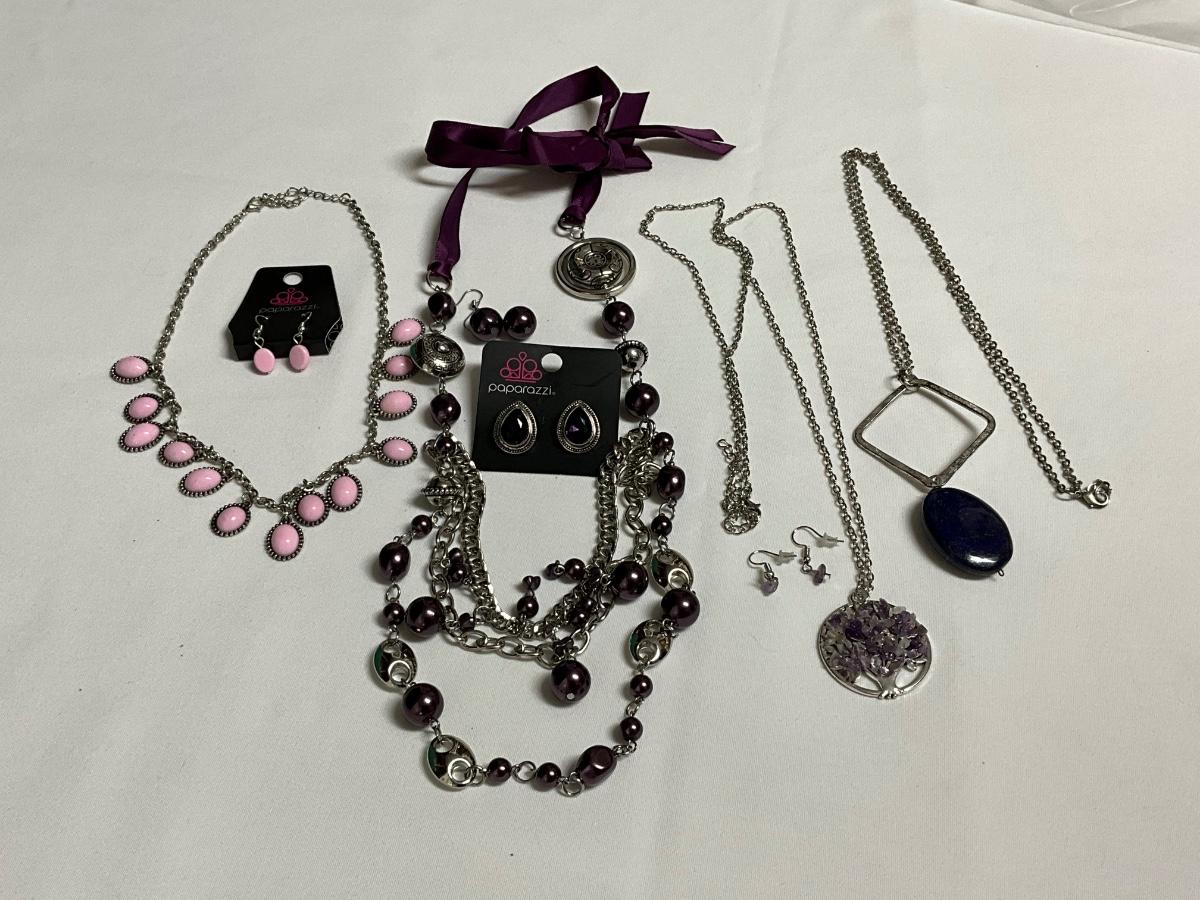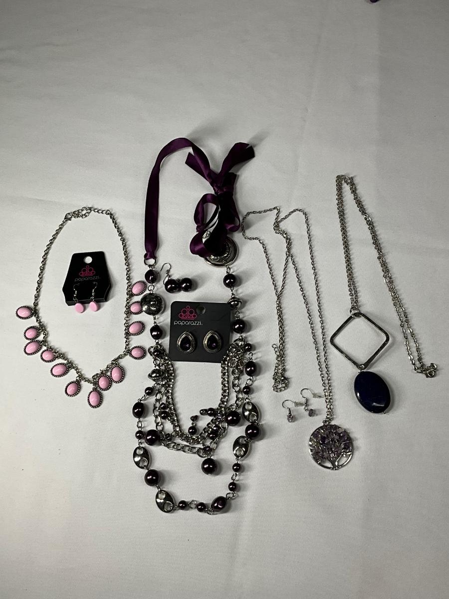 Silver chains w/Purple & Pink grouping which includes Paparazzi sets