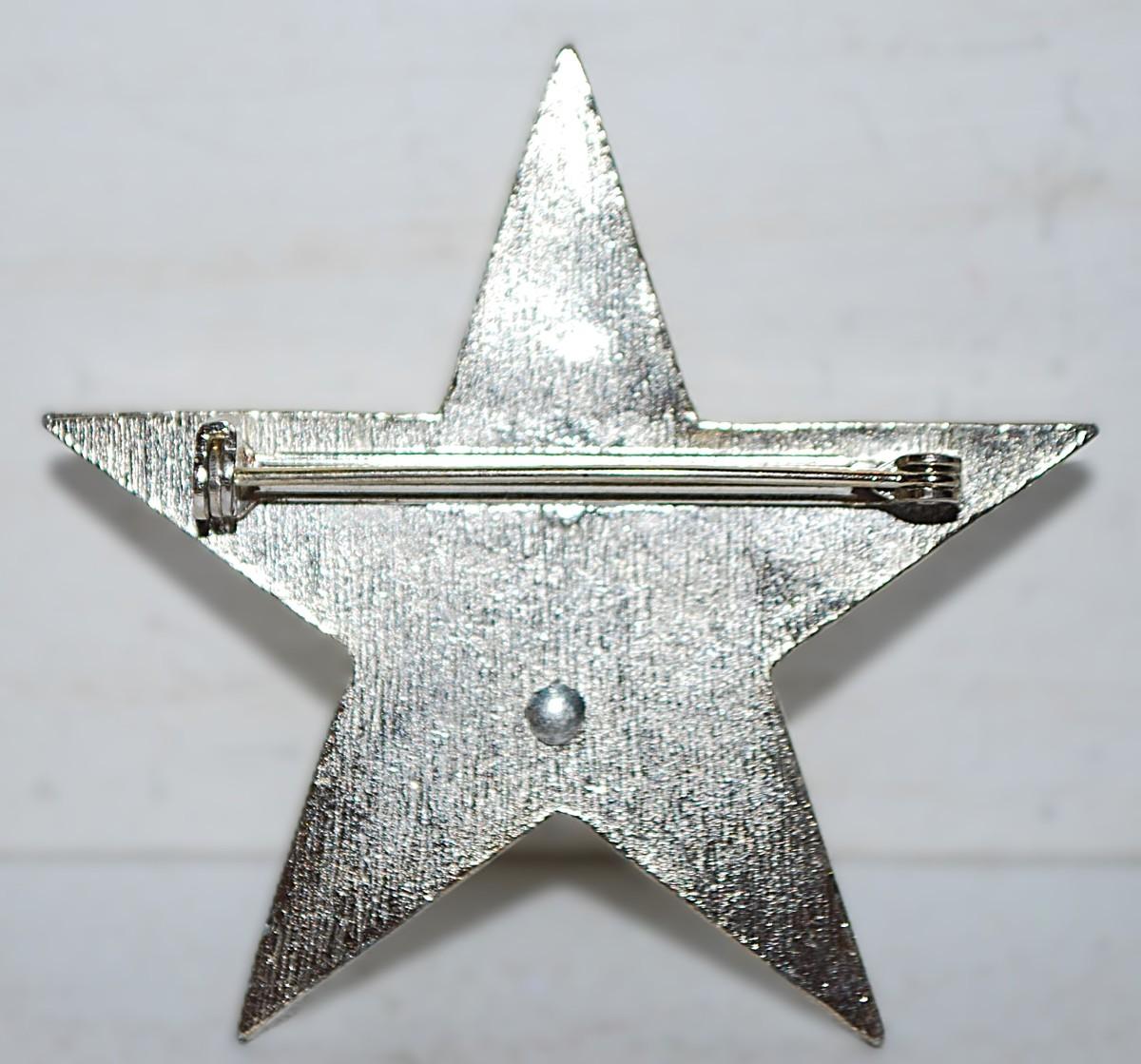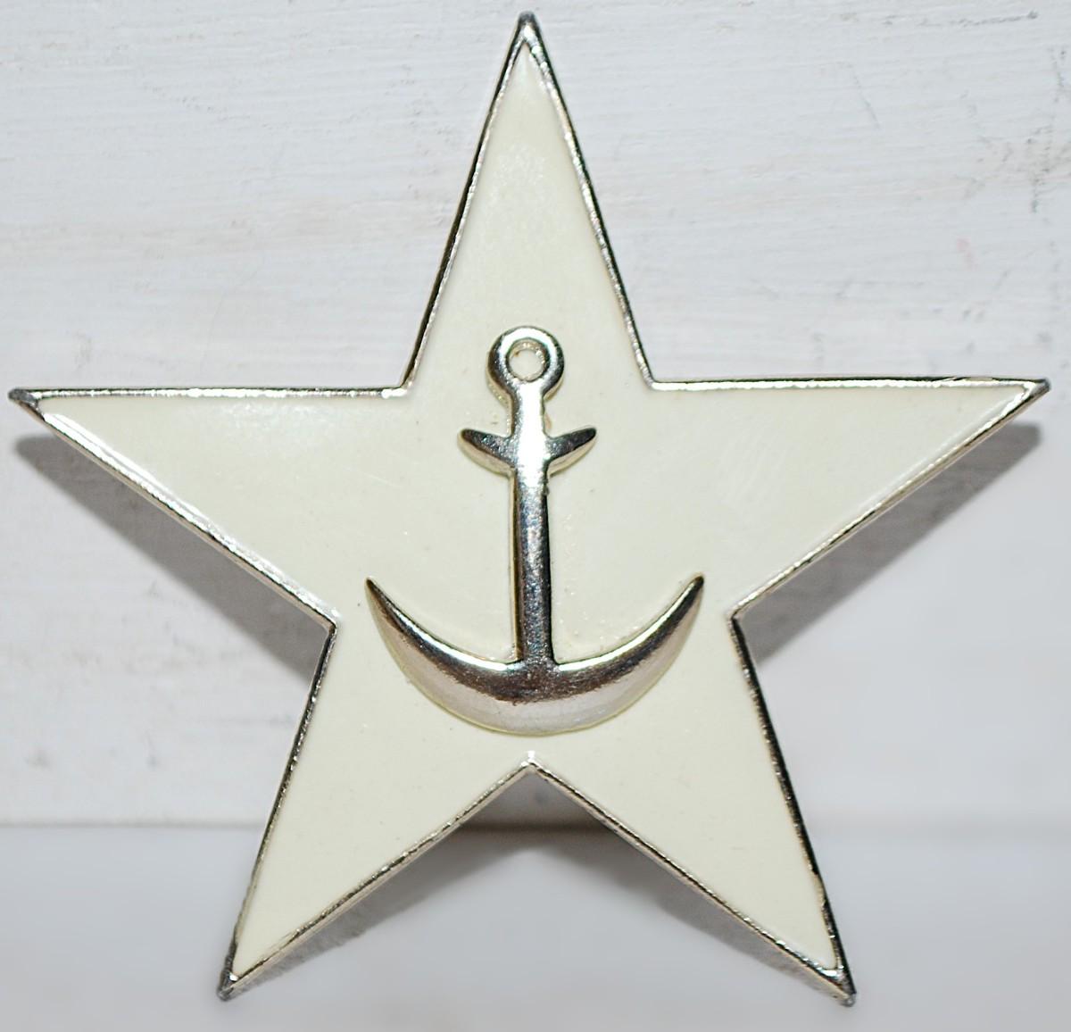 Silver Colored ANCHOR BROOCH (2" x 2") on an Enameled 5 Point STAR and Silver Tone Setting