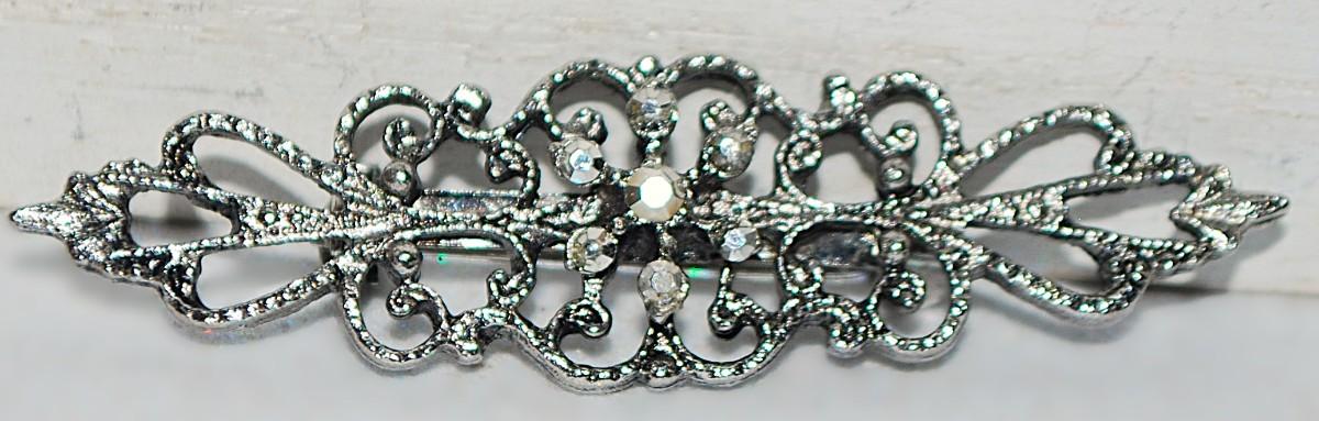 Silver Colored BAR BROOCH (2" x ½") with 7 Tiny Stones in a Center Star on a Silver Tone Setting