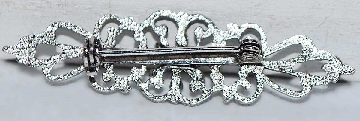 Silver Colored BAR BROOCH (2" x ½") with 7 Tiny Stones in a Center Star on a Silver Tone Setting