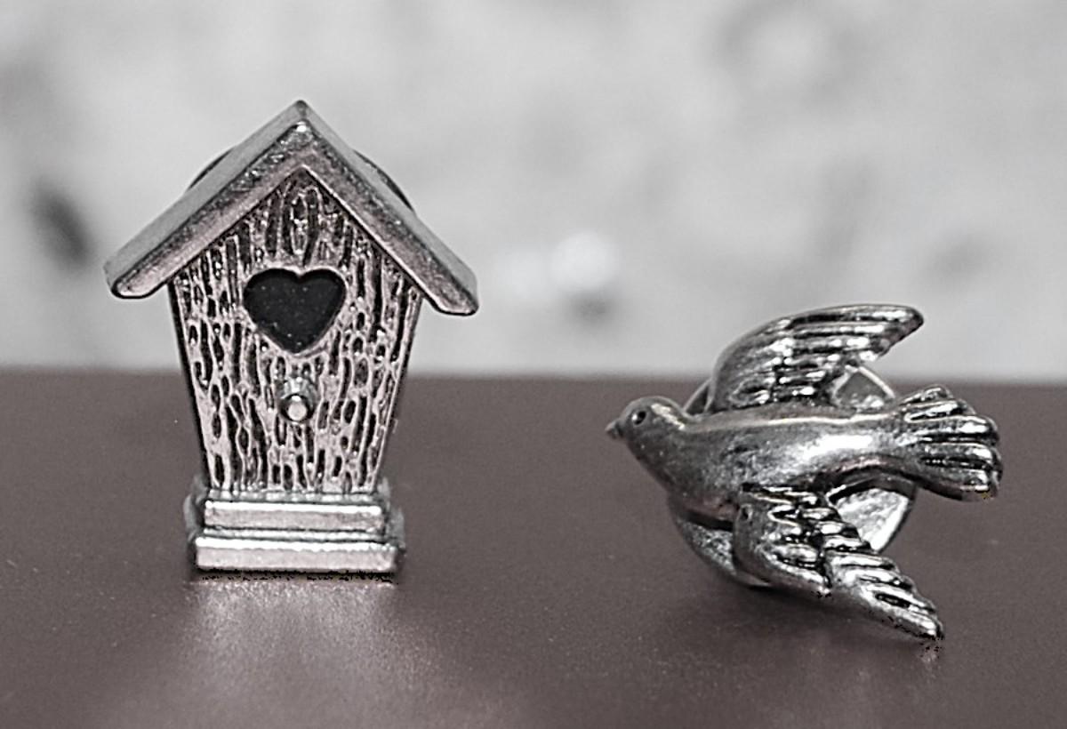 Silver Colored BIRD & BIRDHOUSE TACKS on Silver Tone Settings