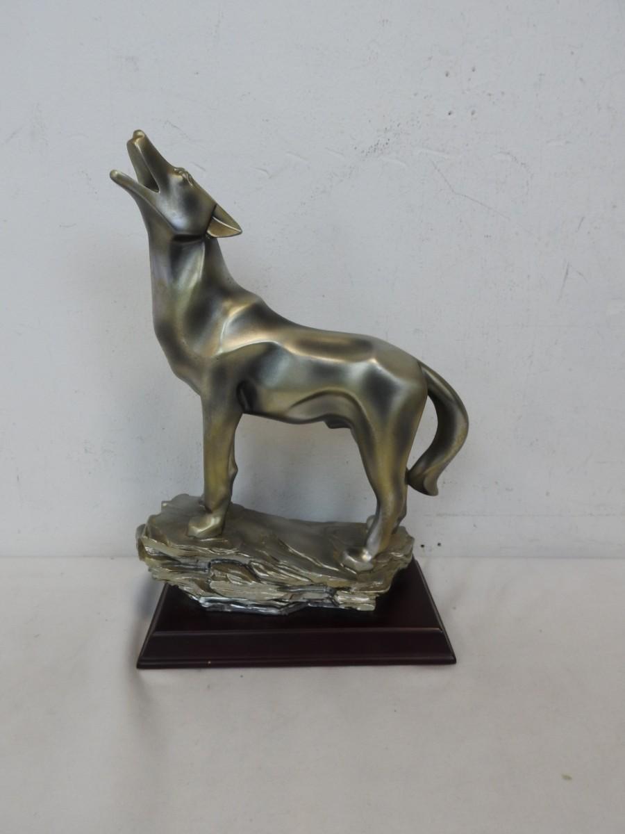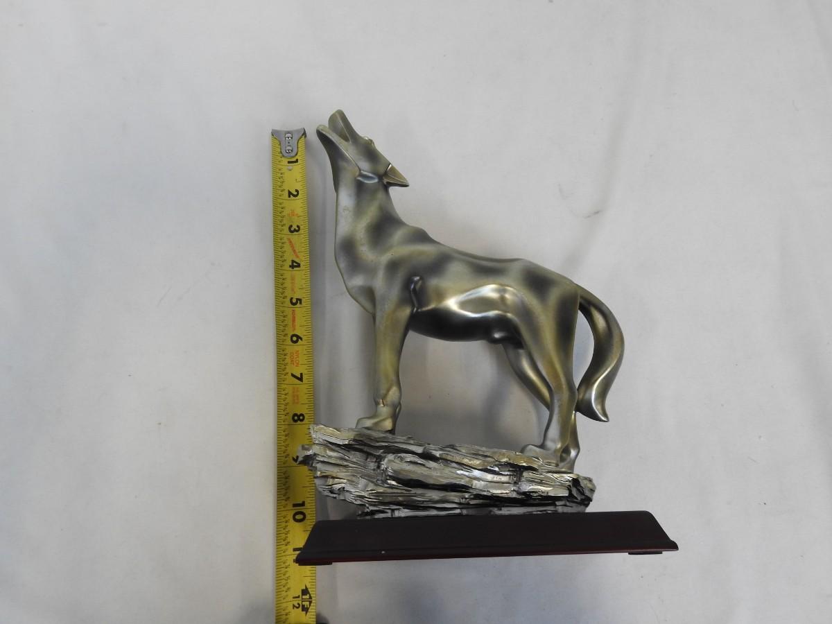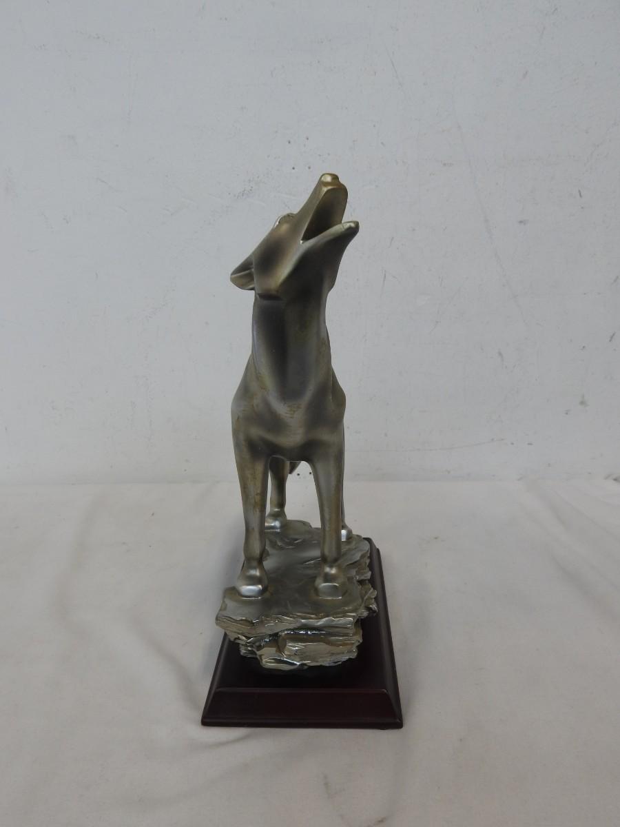 Silver Colored Howling Wolf Statuette, 11" Tall
