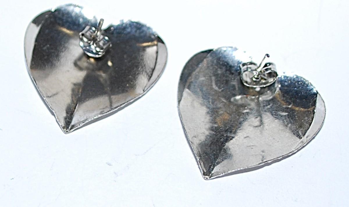 Silver Colored Metal "Hammered" HEART EARRINGS with Stud Post Clasp