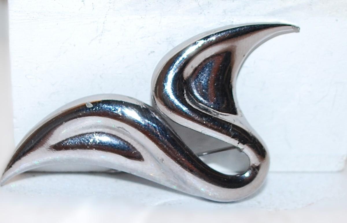 Silver Colored "Whale's Tail" BROOCH (3" x 1½") on a Silver Tone Setting