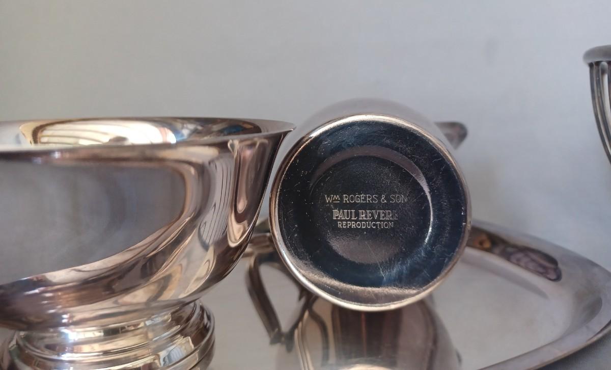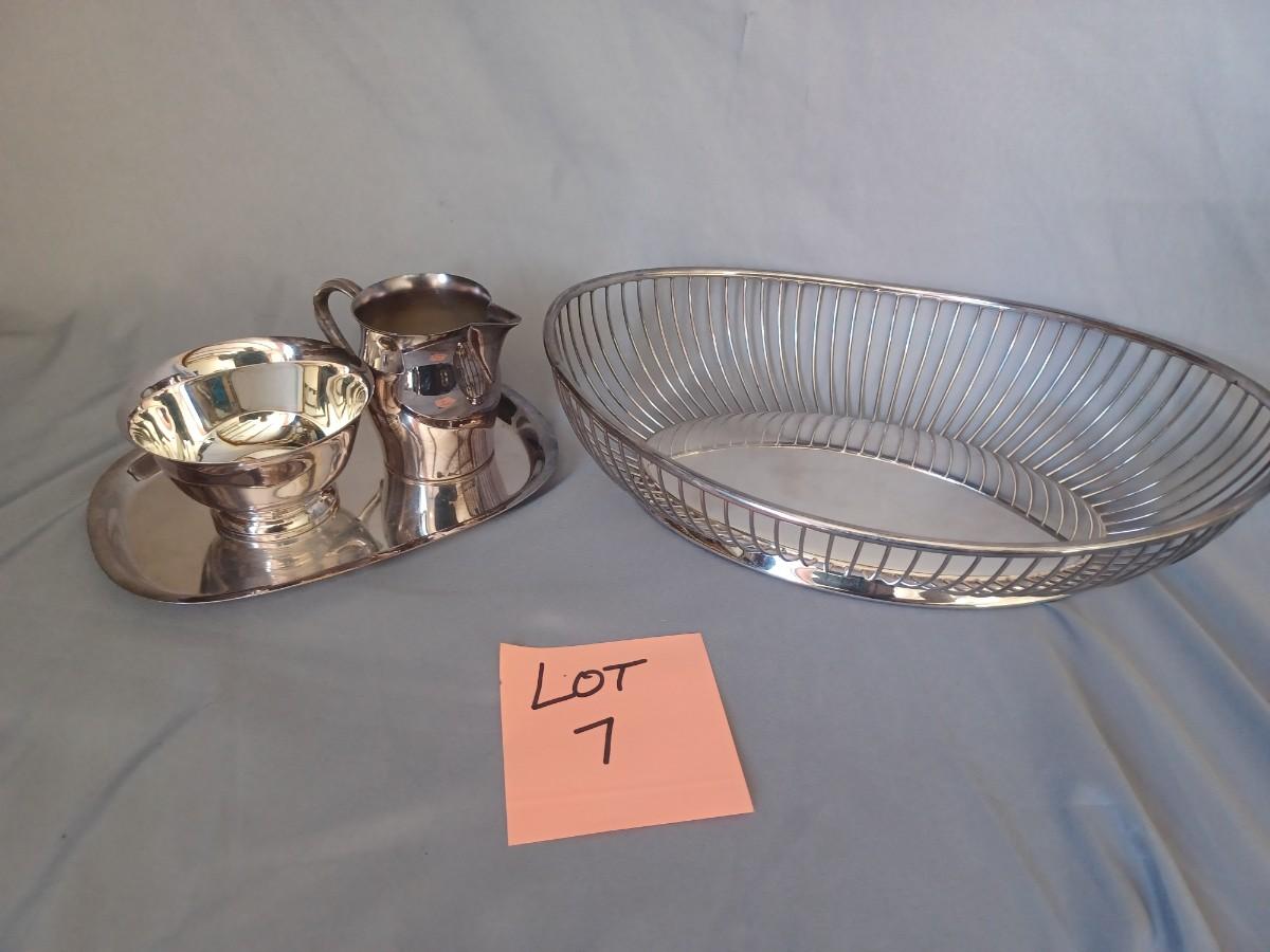 Paul Revere silver Creamer and sugar bowl set with a Gorham Silver basket