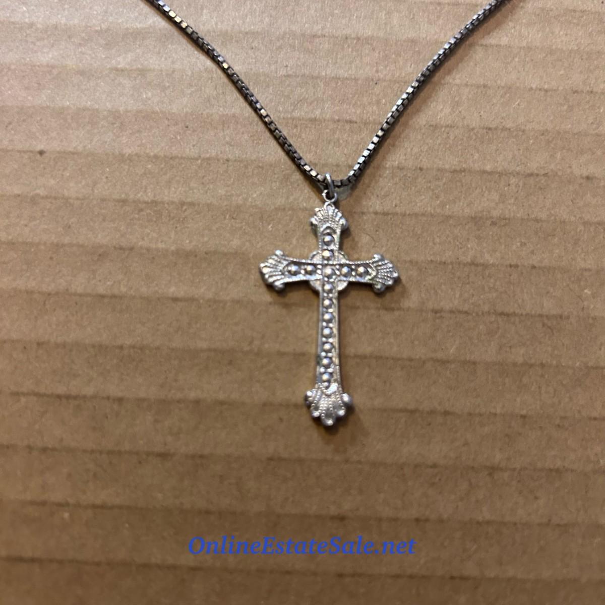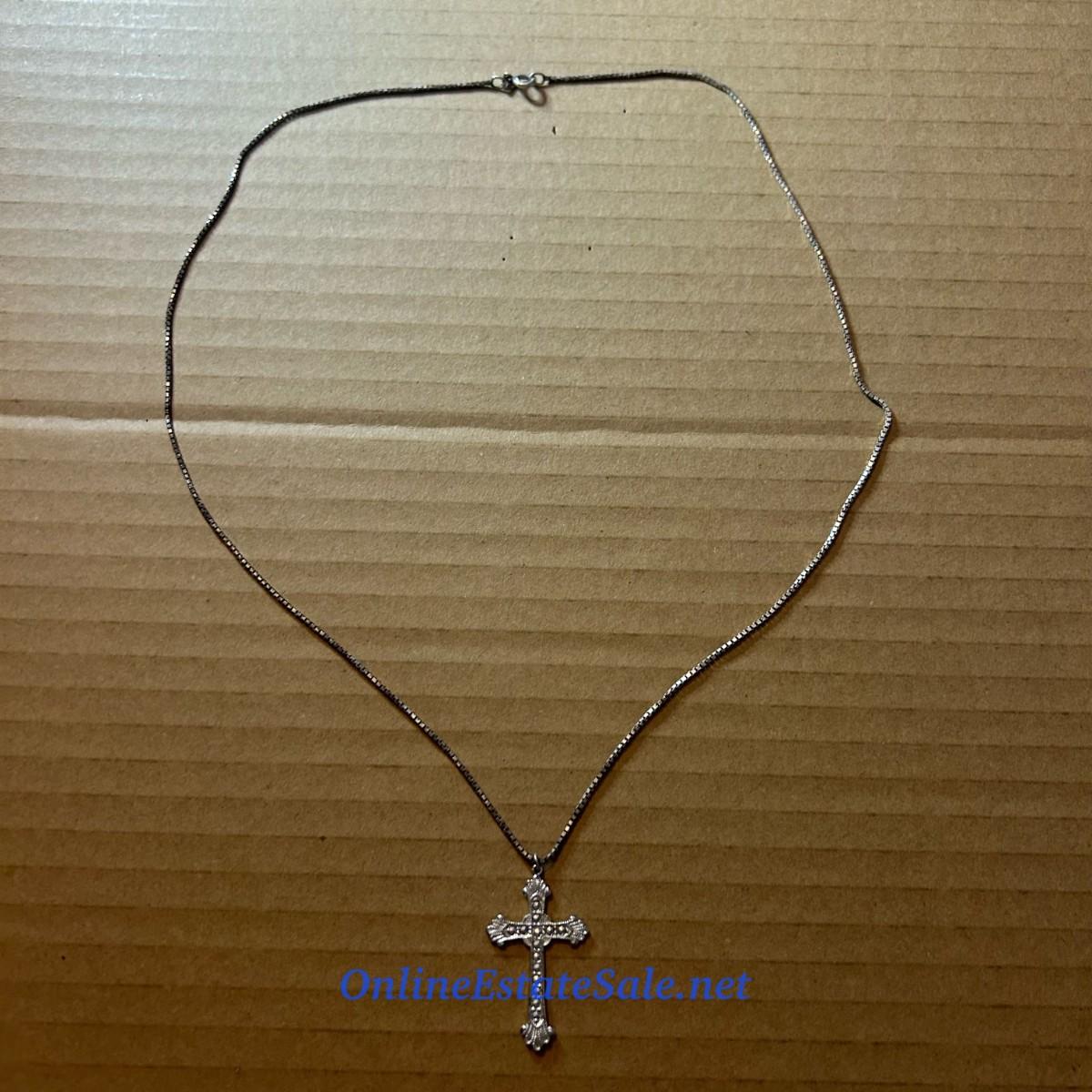 24in Silver Colored Box Chain with Silver Cross Pendant and Spring Clasp