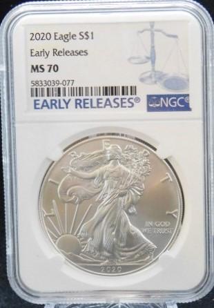 Silver Eagle 2020 NGC MS70 Early Release American Dollar
